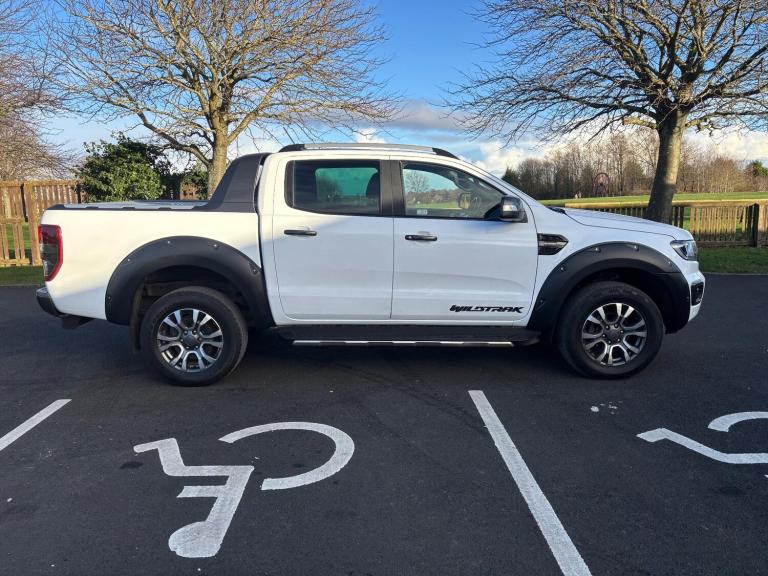 NO VAT, USED FOR LIGHT USE ONLY, SERVICED AT 12K, 25K, 38K MILES, HALF LEATHER HEATED SEATS, SAT NAV, REAR PARKING CAMERA, FRONT AND REAR PARKING SENSORS, LANE KEEPING AID, CRUISE CONTROL,REAR ELECTRIC ROLLER SHUTTER, NO VAT, FINANCE AVAILABLE This 2021 Ford Ranger Wildtrak boasts a clear vehicle history, offering peace of mind for its next owner. This four wheel drive, 2.0 litre diesel model is presented in the desirable Wildtrak trim and features a powerful 210 bhp engine. It comes equipped with a Trailer Tow Pack including a towbar, manual air conditioning, heated front seats for driver and passenger comfort, rear parking sensors for easier manoeuvring, and LED headlights for improved visibility.The Ranger Wildtrak is designed for capability, with a substantial towing weight of 3500 kg, making it a strong contender for those needing to haul significant loads. Its Euro 6 compliant engine ensures it meets current emissions standards. The inclusion of heated seats and LED headlights are notable enhancements that elevate the driving experience beyond that of many similar vehicles, providing greater comfort and safety in various conditions.