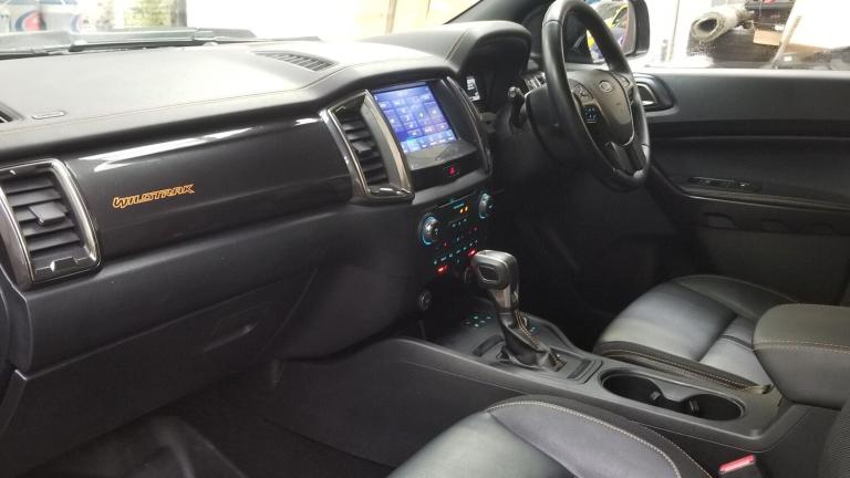 Ford Ranger Wildtrak Pickup Double CabTastefully modified truck. Comes with a wide arch kit, gloss black alloys, rear lift back canopy, led roof lights, nudge bar and front grille.This 2021 Ford Ranger Wildtrak presents a compelling proposition with its remarkably low mileage of just 43,883 miles for its age, coupled with a clear vehicle history check. This four wheel drive, 2.0 litre EcoBlue diesel model, registered in 2021, boasts a powerful 210 bhp engine and meets Euro 6 emission standards. Its Wildtrak trim level ensures a host of desirable features, including passive keyless entry and start, front parking aid with assistance, and a dual control EATC climate system. Comfort is further enhanced by heated front seats for both driver and passenger, and practicality is addressed with a fixed rear view camera for parking assistance.The Ford Ranger Wildtrak is designed for capability and comfort, offering a substantial towing weight of 3500 kg. The inclusion of features such as front and rear parking aids, alongside the rear view camera, demonstrates a commitment to ease of use in various driving situations. The heated seats and climate control provide a more comfortable experience for occupants, regardless of the weather. These elements, combined with the robust 2.0 litre EcoBlue engine and four wheel drive system, position this Ranger as a well equipped and capable vehicle that stands out from others in its class.