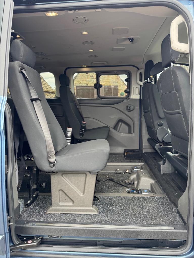 Ford Tourneo Custom2.0 320 EcoBlue Titanium L1 Euro 6 (s/s) 5drDIRECT MOTABILITY NO VATThe vehicle comes direct from motability two keys and full main dealer service history. This model is a 4 seater variant with wheelchair ramp. 12 months mot upon purchase. First to view will buy ., NATIONWIDE DELIVERY ASK FOR QUOTE, 12 months MOT, Full dealership history, Short wheel-base, 4 seats, Blue, 1 owner, 17in Alloy Wheels - 10 Spoke Silver, 17in Mini Spare Wheel, Active Park Assist, Airbag - Drivers, Airbag - Front Passengers, Airbag - Front Side and Curtain Airbags, Alternator - Standard Duty 165Amp, Anti-Lock Braking System - ABS - with Electronic Brake-Force Distribution, Battery - Cold Start -20 Degree C, Body Colour Door and Tailgate Handles, Bodyside Mouldings - Body Colour, Bumpers - Front and Rear Body Colour, Carpet Floor Covering in Passenger Compartment, Courtesy Light - Footwell Illumination - Side Loading Door Only, Courtesy Light - Header-Mounted - Front Maps Lights with Theatre Dimming, Courtesy Light - Rear Seat with Theatre Dimming, Cruise Control with Adjustable Speed Limiter, Door Mirrors - Blind Spot Eliminator and Integrated Side Indicator, Door Mirrors - Body Colour Skull Caps, Door Mirrors - Power-Foldable - Electrically-Operated and Heated, Doors - Drivers and Passengers Side - Sliding Glazed Doors and Steps, Dual-Circuit Front and Rear Discs with Self-Adjusting Servo-Assistance and ABS, EBA - Emergency Brake Assist, ESC - Electronic Stability Control, Emergency Brake Warning, Extra Heavy Duty Alternator - 240AMP, Ford Easy-Fuel Capless Refuelling System with Misfuel Inhibit, Front Fog Lights with Static Cornering, Front and Rear Compartment Manual Air Conditioning, Front and Rear Parking Sensors, Gearshift Knob - Leather-Trimmed, Glazed Rear Tailgate with Wash-Wipe, Glovebox - with Lockable Lid, Halogen Projector Headlight with LED Day Running Lights, Hill Start Assist, ICE Pack 23, ISOFIX - Child Seat 4 Attachments - Drivers and Passengers Side - 2nd and 3rd Row, Load Compartment - DIN 75410 Compliant Tie-down Loops, Loadspace Compartment Lights, Locks - Audio Mislock Feedback - Audible Signal if a Door is Ajar When Locking Activated, Locks - Auto Relocking - Doors Relock after 45 Seconds if no Door is Opened, Locks - Configurable 2 - Stage Unlocking, Locks - Power Door Deadlocks - Shielded with Strengthened Mountings, Mud Flaps - Front, Passive Anti-Theft System - PATS - Immobiliser, Perimeter Anti Theft Alarm, Power Assisted Steering, Power Front Windows with One-Shot Up-Down, Quickclear Heated Windscreen, Rain Sensing Front Wipers and Automatic Headlights, Rear Privacy Glass, Rear Seats - Manual Recliner, Rear Seats - Second Row - Triple Single Seats - Foldable and Detachable, Remote Central Locking, Roll Stability Control and SideWind Mitigation, Running Boards - Door Length, Seatbelts - 3 Point Diagonal Inertia Reel - All Seats, Side Rear Window Blinds, Side Windows - Second Row - Flip Open, Steering Column - Rake and Reach Adjustment, Steering Wheel - 4-Spoke Leather Trimmed, Sunvisors - Illumination of Driver and Passenger, Traction Control - TC, Trip Computer, Tyre Pressure Monitoring System - TPMS, Vehicle Identification Number - VIN - Visible, Water in Fuel Filter with Sensor,