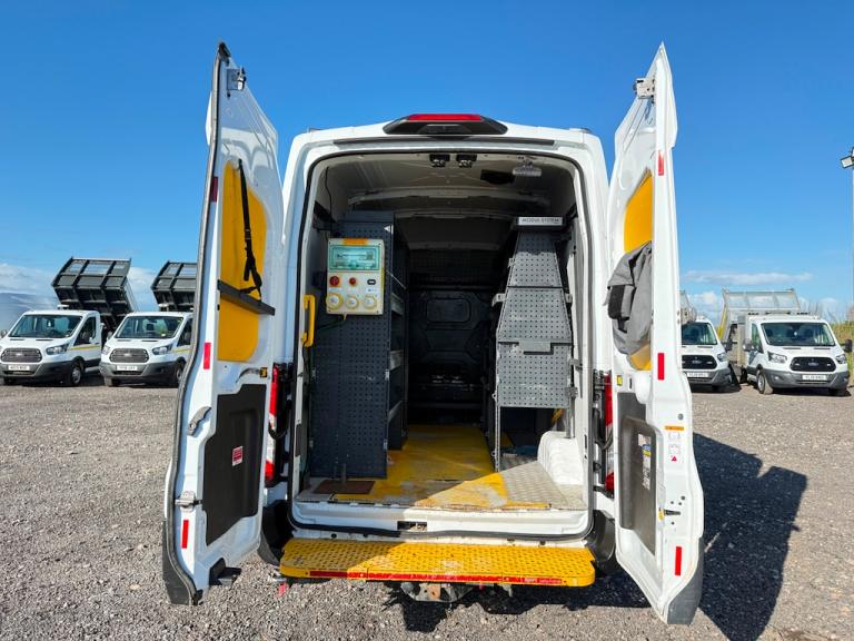 2021 Ford transit High Roof MEDIUM WHEEL BASE , 2.0 TDCi 350 REAR WHEEL DRIVE . EURO 6 £14795(plus vat) -Finance available -12 Months free AA breakdown cover -3 months Warranty ,6 or 12 months extended package available -Low 56k genuine miles -Full service history including Wet Belt been done -MOT April 2027 WE HAVE FEW OF THESE STRAIGHT FROM WALES AND WEST UTILITIES READY FOR WORK. It comes with: -PTO AIR COMPRESOR AND ONBOARD POWER. -Reversing camera -Cruise Control -LED Lighting. -Air conditioning. -Full racking/110V power sockets. -Electric Tow bar -Electric windows and mirrors -Chevrons and Beacons -Touchscreen media player,Bluetooth USB/Aux -Very good tyres all around Van is ready to go ,mechanically everything works as it should, absolutely nothing wrong with it at all. FOR MORE QUALITY USED COMERCIAL VANS PLEASE GET IN TOUCH 0117 427 0703 OR CHECK OUR WEBSITE:WWW/Albvans.co.uk We are based in Somerset TA117DS Viewing ,test drivers or any inspection welcome.. 16in Steel Wheels,Airbags - Driver,Anti-Lock Braking System - ABS with Electronic Brake Force Distribution - EBD,Assist Handle - Located on B-pillar,Battery - Cold Start -20 Degree C,Bluetooth,Bodyside Mouldings - Wide - Self Colour,Bottle Holder - Twin 2 litre Bottle Capacity - Facia-Mounted,Bulkhead - Full Steel,Cargo Door Handle - Self Colour,Courtesy Lights - Header-Mounted Front with Theatre Dimming,Curve Control,Door Handles - Self Coloured,Door Mirrors - Blind Spot Eliminator and Integrated Side Indicator,Door Mirrors - Manual,Doors - Unglazed Rear Doors - Hinged for 180 Degree Opening - Positive Stop At 90 Degree,Dual-Circuit Front and Rear Discs with Self-Adjusting Servo-Assistance and ABS,EBA - Emergency Brake Assist,EPAS - Electric Power Assisted Steering,ESC - Electronic Stability Control,Electric Windows - Front,Emergency Brake Warning,Floor Covering - Cab Easy-Clean Rubber,Fold Out Front Passenger Seat Table,Ford Easy-Fuel Capless Refuelling System,Ford SYNC with 4.2in TFT Screen,Front - Independent MacPherson Struts - Coil Springs - Stabiliser Bar and Gas-Pressurised Shock Absorbers - Rear - Leaf Springs and Gas-Pressurised Shock Absorbers,Front Bumper - Self Colour,Front Grille - Self Colour,Front Passengers Seat - Dual Fixed with Split Lift Up Cushion for Stowage and Fold Out Table,Gearshift Indicator Light,Glovebox - With Lid and A4 File Storage Capability,Headlights - Halogen Projector Containing Daytime Running LIghts,Headlights - Levelling Control,Headlights Courtesy Delay - 30 Seconds Duration,Headlining - Cab - Moulded,Heater - Positive Thermal Coefficient - PTC,Heavy Duty Alternator,Hill Start Assist,ICE Pack 17,Immobiliser - Safeguard Passive Anti-Theft System - PATS - Insurance-Approved Category 2 Immobiliser,LAC - Load Adaptive Control,Less Easy Clean Floor,Less Steel Spare Wheel,Loadspace Compartment Light,Locks - Audio Mislock Feedback - Audible Signal if a Door is Ajar When Locking Activated,Locks - Auto Locking on Drive-Away - Doors Automatically Lock at 8 kmh or 5 mph,Locks - Auto Relocking - Doors Relock after 45 Seconds if no Door is Opened,Locks - Configurable Unlocking - 2-Stage Unlocking,Locks - Key Operated Bonnet Release,Locks - Power Door Deadlocks - Shielded with Strengthened Mountings,Mudflaps - Rear,MyKey,Overhead Storage Console,Passenger Side Sliding Load Door - Solid,Power Point - 2 x 12V Located on Instrument Panel and in Stowage Bin,RSC - Roll Stability Control,Radio with Remote Stalks,Rear Bumper - Self Colour with Integrated Step,Remote Central Door Locking with Deadlocks,Remote Central Locking with One Key Fob,Seatbelts - 3 Point Diagonal Inertia Reel - All Seats,Seats - Drivers 4-Way Adjustment with Armrest,Selectable Drive Mode,Side Wind Mitigation,Steering Column - Rake and Reach Adjustment,Steering Wheel - 4 Spoke Polyurethane,Storage - Front Door Map Pockets,Storage - Underseat Stowage Compartment Under Dual Passenger Seat,Tinted Glass,Trip Computer,Tyre Inflator Kit,Vehicle Identification Number - VIN - Visible,Vehicle Maintenance Monitor,Water in Fuel Filter with Sensor,Wheel Covers - Half Caps,Wipers - Front Variable-Intermittent with Electric Wash,2nd Remote Key,70mph Fixed Engine Governer,Adaptive Cruise Control with Adjustable Speed Limiter,All Weather Tyres - Goodyear,Auxiliary Fuel Port,Configurable Locking 3,Frozen White,Heavy Duty Front Axle,ICE Pack 21,Manual Air Conditioning,Rear View Camera with Trailer Hitch Assist,Tyre Pressure Monitoring System - TPMS