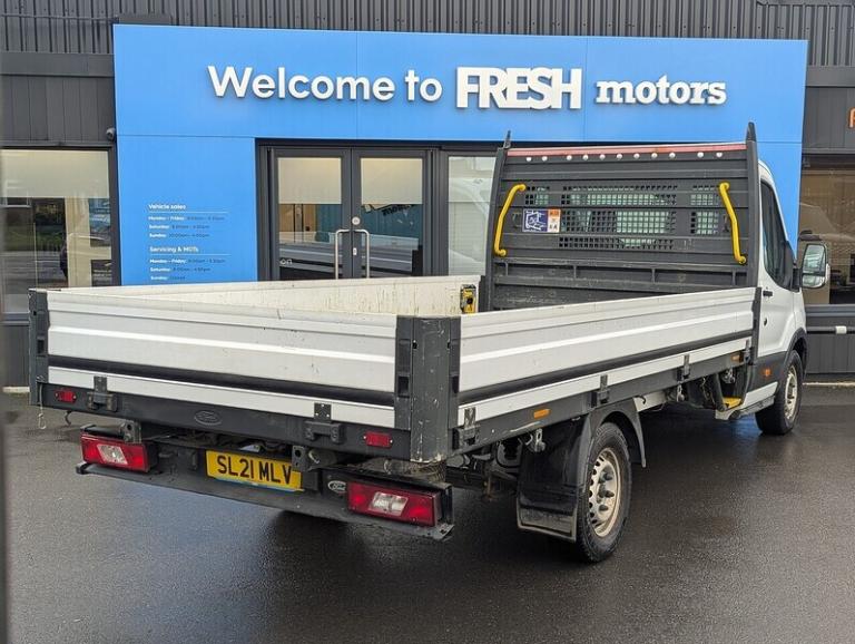 Fresh Motors presents this hardworking Ford Transit 350 Dropside EcoBlue Leader in long wheelbase L4 form, offering outstanding practicality and strong commercial capability. This LEZ-compliant single-cab example arrives with a recent wetbelt change, fresh major service and MOT for total peace of mind. Its generous 4000mm load length and payload capacity of up to 1469kg make it ideal for demanding jobs, while DAB radio and Bluetooth keep every journey connected. With its efficient EcoBlue engine and front-wheel-drive stability, this Transit delivers reliable performance and superb everyday usability, ready to support your business from day one Late Night Shopping – Speak to our sales team until 9pm, Monday to Friday for evening convenience.?? Certified Fresh – Award-winning vehicle preparation standard, quality assurance you can trust Routine Servicing and MOT – Ensuring reliability & performance, always Extensive Inspections – Thorough checks by skilled technicians, your safety is our top priority Transparent, Honesty and Provenance – No hidden past or surprises, just confidence in every vehicle Reserve for just £99 – Via our website, quick and easy online reservation Part Exchange Available – Trade in your current vehicle hassle-free Finance Options – Flexible deposit & term choices, apply via our website (subject to status) Protection Warranties – 12, 24, or 36-month peace of mind options available.? Ceramic Paint & Fabric Protection available – Keep your vehicle looking brand new GPS Trackers available – For extra security and peace of mind Support Fee added – Hundreds of pounds worth of benefits and added value for maintenance, our community & environment Visit: freshmotors.co.uk for more details!.Frozen White,Spare Wheel - Steel, Ford SYNC with 4.2in TFT Screen, ICE Pack 17, Two 12V Power Socket, Selectable Drive Mode, Shift Indicator Light, Trip Computer, 16in Steel Wheels, Bumper - Front Body Colour - Partial, Door Handles - Self Coloured, Door Mirror - Manual Adjust - Short Arm, Door Mirrors - Blind Spot Eliminator and Integrated Side Indicator, Electric Windows - Front with One Touch Lowering Drivers, Front Grille - Self Colour, Wheel Covers - Full, Wide Bodyside Mouldings - Self Colour, Headlights - Halogen Projector Containing Daytime Running LIghts, Courtesy Lights - Header-Mounted Front with Theatre Dimming, Drivers 8-Way Seat Adjustable with Armrest, Easy-clean Rubber Floor Covering in Cab, Glovebox with A4 File Storage, Headlining - Cab - Moulded, LAC - Load Adaptive Control, Less Steel Spare Wheel, Locks - Audio Mislock Feedback - Audible Signal if a Door is Ajar When Locking Activated, Overhead Storage Shelf, Recirculation Heater - Front, Steering Column - Rake and Reach Adjustment, Steering Wheel - 4 Spoke Polyurethane, Storage - Drivers Side - Storage Compartment on Facia Top, Storage - Front Door Map Pockets, Storage - Underseat Stowage Compartment Under Dual Passenger Seat, Vehicle Maintenance Monitor, Wipers - Front Variable-Intermittent with Electric Wash, Battery - Cold Start -20 Degree C, EPAS - Electric Power Assisted Steering, Extra Heavy Duty Alternator - 240 Amp, Suspension - Front Independent MacPherson Struts -Variable Rate Coil Springs - Stabiliser Bar - Gas-Pressurised Shock Absorbers and Rear Leaf Springs, ABS - Anti-lock Braking System, Curve Control, Drivers Airbag, Dual-Circuit Front and Rear Discs with Self-Adjusting Servo-Assistance and ABS, EBA - Emergency Brake Assist, Emergency Brake Warning, ESC - Electronic Stability Control, Ford Easy Fuel Capless Refuelling System with Misfuel Inhibitor, Hill Start Assist, Immobiliser - Safeguard Passive Anti-Theft System - PATS - Insurance-Approved Category 2 Immobiliser, Locks - Auto Locking on Drive-Away - Doors Automatically Lock at 8 kmh or 5 mph, Locks - Auto Relocking - Doors Relock after 45 Seconds if no Door is Opened, Locks - Configurable Unlocking - 2-Stage Unlocking, Locks - Key Operated Bonnet Release, Remote Central Locking, RSC - Roll Stability Control, Seatbelts - 3 Point Diagonal Inertia Reel - All Seats, Side Wind Mitigation, Vehicle Identification Number - VIN - Visible