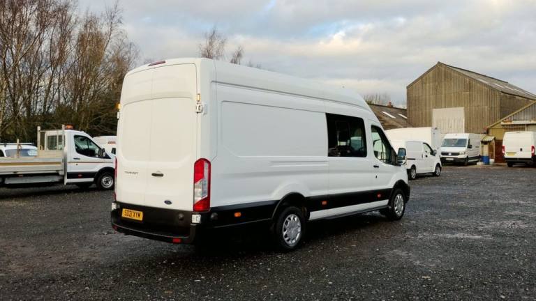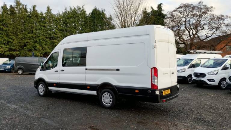 Crew Van Double Cab L4 H3 Trend Tdci 130 ps DCIV 350 XLWB High Roof With Air Conditioning, Electric Pack, Parking Sensors, Bulkhead and Ply Lining in great condition. **Factory Fitted Crew Van** . presenting an exceptional factory-fitted configuration in superb condition. This L4 H3 Trend Tdci 130 PS DCIV 350 XLWB High Roof van boasts the highly desirable and practical crew cab layout, providing versatile seating and cargo space. It comes well-equipped with air conditioning, the electric pack, parking sensors, a full bulkhead, and durable ply lining for immediate work readiness. Having had just one careful owner from new, it is supplied with two keys and has been maintained to a high standard. An ideal, robust, and spacious workhorse ready for its next owner. Please enquire for full details and to arrange a viewing. NEED LOW RATE VAN FINANCE WE CAN HELP // RING MARK ON [Phone number removed] .16in Steel Wheels, 236 Degree Opening Rear Cargo Doors, 2nd Remote Key, Airbags - Driver, Anti-Lock Braking System - ABS with Electronic Brake Force Distribution - EBD, Assist Handle - Located on B-pillar, Auto Lights and Wipers, Battery - Cold Start -20 Degree C, Bluetooth, Bodyside Mouldings - Wide - Self Colour, Bottle Holder - Twin 2 litre Bottle Capacity - Facia-Mounted, Cargo Door Handle - Self Colour, Courtesy Light - Header-Mounted - Front Maps Lights with Theatre Dimming, Courtesy Lights - Rear Seat with Theatre Dimming, Cruise Control with Adjustable Speed Limiter, Curve Control, Door Handles - Self Coloured, Door Mirrors - Blind Spot Eliminator and Integrated Side Indicator, Doors - Unglazed Rear Doors - Hinged for 180 Degree Opening - Positive Stop At 90 Degree, Dual-Circuit Front and Rear Discs with Self-Adjusting Servo-Assistance and ABS, EBA - Emergency Brake Assist, EPAS - Electric Power Assisted Steering, ESC - Electronic Stability Control, Electric Windows - Front, Emergency Brake Warning, Floor Covering - Cab Easy-Clean Rubber, Fold Out Front Passenger Seat Table, Ford Easy-Fuel Capless Refuelling System, Ford SYNC with 8in TFT Screen, Front - Independent MacPherson Struts - Coil Springs - Stabiliser Bar and Gas-Pressurised Shock Absorbers - Rear - Leaf Springs and Gas-Pressurised Shock Absorbers, Front Bumper - Self Colour, Front Fog Lights, Front Grille - Self Colour with Chrome Surroud, Front Passengers Seat - Dual Fixed with Split Lift Up Cushion for Stowage and Fold Out Table, Gearshift Indicator Light, Glovebox - with Lockable Lid and A4 File Storage Capability, Headlights - Halogen Projector Containing LED Daytime Running Lights and Static Cornering, Headlights - Levelling Control, Headlights Courtesy Delay - 30 Seconds Duration, Headlining - Cab - Moulded, Heated Front Windscreen, Heater - Positive Thermal Coefficient - PTC, Heavy Duty Alternator, Hill Start Assist, ICE Pack 21, ISOFIX - Child Seat Attachments - 2x Second Row, Immobiliser - Safeguard Passive Anti-Theft System - PATS - Insurance-Approved Category 2 Immobiliser, LAC - Load Adaptive Control, Less Easy Clean Floor, Less Steel Spare Wheel, Loadspace Compartment Light, Locks - Audio Mislock Feedback - Audible Signal if a Door is Ajar When Locking Activated, Locks - Auto Locking on Drive-Away - Doors Automatically Lock at 8 kmh or 5 mph, Locks - Auto Relocking - Doors Relock after 45 Seconds if no Door is Opened, Locks - Configurable Unlocking - 2-Stage Unlocking, Locks