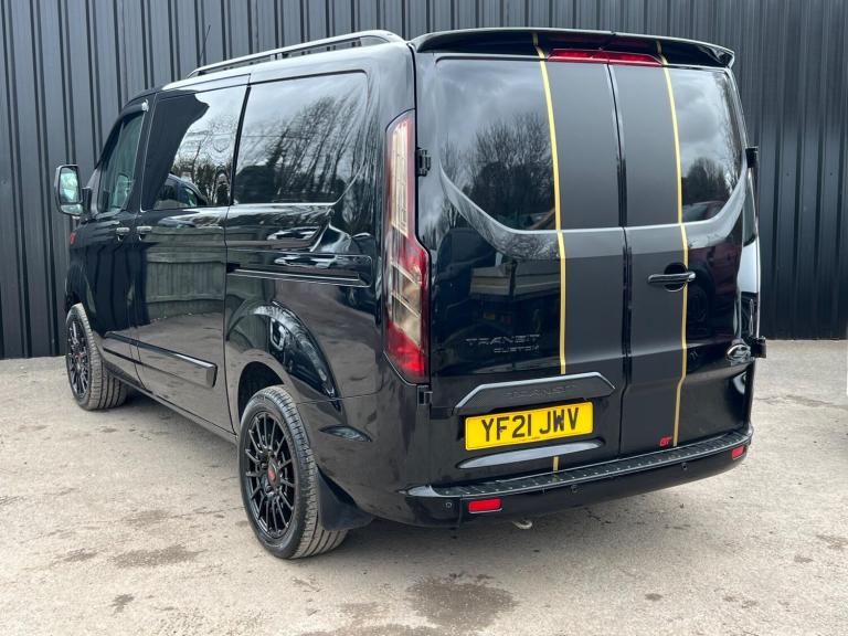 GT-Design Edition Ford Transit Custom 2.0 300 EcoBlue Limited L1 H1 Euro 6 Crew van (6 seat rear conversion) (s/s) 5drFREE DELIVERY TO ENGLAND AND WALES (T'S & C'S APPLY)• Reg: YF21 JWV? Upgrades / Styling•Brand new 18'' alloys & commercial tyres (we can supply 18''s if preferred)•Gloss black lower front splitter•Gloss black embossed grill•Gloss black Rear spoiler•Colour coded/gloss black trims•Gloss black rear Transit badge•Gloss black wing mirrors•Roof rails•Wind & rain deflectors•Gloss black door handles (or colour coded) & mirrors• VAT qualifying• We have a choice of 50+ Transits available (various mileages & specs)•