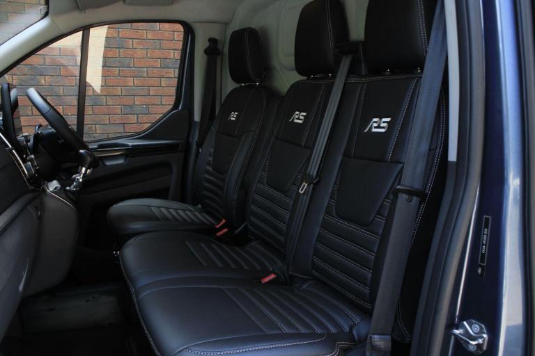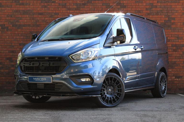 OVER 200 VEHICLES IN GROUP STOCK. Finished in metallic blue with full black leather interior. Features include ICE pack 25 with intelligent adaptive cruise control, Apple CarPlay and Android Auto, SYNC satellite navigation, front splitter and rear spoiler in gloss black, 20 OZ Racing alloy wheels finished in black, front and rear park distance control, heated RS embossed seats, air conditioning, Bluetooth connectivity with media streaming, DAB digital radio, automatic headlights, lane keeping aid, traffic signs, heated front windscreen, drive modes, electric folding exterior mirrors, sliding passenger side rear door, drivers armrest, power converter 230V 150W, roof rails, voice control, multifunctional leather steering wheel, 6 speed manual transmission plus much more standard specification. This 1 owner Transit Custom is offered in excellent condition having covered 77000 miles from new. The van comes complete with a service history. Plus VAT. GOOGLE YORKSHIRE VEHICLE SOLUTIONS FOR OUR CUSTOMER REVIEWS. PLEASE CALL OR E-MAIL FOR FURTHER DETAILS OR TO ARRANGE A PERSONALISED VIDEO OR VIEWING. THIS DEALER HAS COMMITTED TO AA CARS STANDARDS AND IS APPROVED BY THE CHARTERED TRADING STANDARDS INSTITUTE.