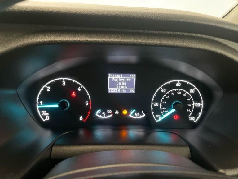 ..Easy fuel capless refuelling system, Ford Eco mode, PAS, Selectable drive mode, Vehicle maintenance monitor, Audio controls mounted on steering wheel, Aux input socket, Body coloured door mirrors, Body coloured front bumper, Electric front windows with one touch facility for driver and front passenger, Front mud flaps, Headlamp levelling, Intermittent front wash/wipe, Partialy body coloured rear bumpers, Passenger side sliding load door with track cover, Rear mudflaps, 2 adjustable sunvisors, Cloth upholstery, Courtesy light, Easy clean load floor, Height adjustable front headrests, Illuminated footwell, Lockable glove box, Map reading lights, Moulded cab floor liner, Moulded cab headlining, Passenger underseat storage box, Reach and rake adjustable steering column, Recirculation heater, Rubber floor covering, 3 point seatbelts for all seats, Driver's airbag, Front seatbelt pretensioners, Height adjustable drivers seatbelt mount, Passenger seatbelt height adj, Auto locking on drive-away, Auto relocking, Power door dead locks, Remote central locking, 2 12v sockets, 80 litre fuel tank, ABS, Auto start/stop system, Diesel particulate filter, ESP + EBA, Heavy duty alternator, Roll stability control, Side wind mitigation, Full wheelcovers