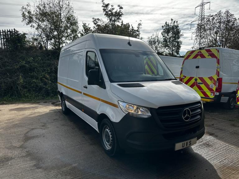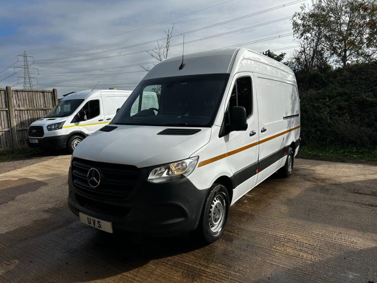 This 2021 Mercedes Benz Sprinter van boasts a single owner from new, offering excellent provenance. The 2.0 litre, 148 bhp diesel engine meets Euro 6 emission standards, ensuring efficient performance. This L2 H2 Progressive RWD model comes equipped with a Bluetooth interface for hands free telephone calls, and the convenience of both Android Auto and Apple CarPlay integration. Automatic headlights are also included, enhancing visibility and ease of use.The 315 CDI Progressive derivative is designed for practicality and modern connectivity. The inclusion of Android Auto and Apple CarPlay means you can seamlessly integrate your smartphone for navigation, music, and calls, setting it apart from many other vans. The Bluetooth functionality further simplifies communication on the go, while the automatic headlight assistant provides added safety and convenience. This Sprinter represents a well maintained and feature rich option for your business needs.In the rear there is alluminium racking,dev unit,handwash and fire extinguisher.