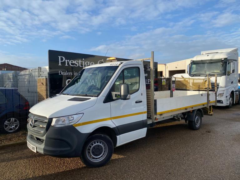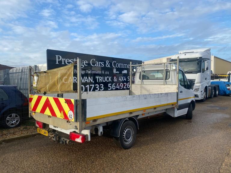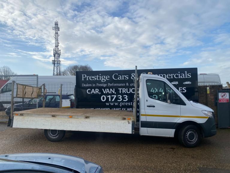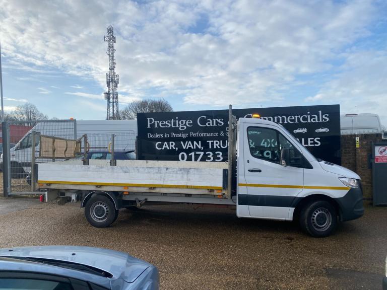 2021 REGISTERED 70REG RARE AUTOMATIC WITH AIR CON CLIMATE MERCEDES SPRINTER COVERED 117702 MILES. 3.5 TONNE LWB L3 LEGENDARY SPRINTER LONG WHEEL BASE PICK UP TRUCK DROPSIDE LORRY. 2.1 CDI 163 BHP TURBO DIESEL WITH 7 SPEED AUTOMATIC GEARBOX. 1 PLC COMPANY OWNER FROM NEW WITH FULL SERVICE HISTORY. WILL BE GIVEN FULL SERVICE INCLUDING GEAR OIL CHANGE WITH GENUINE MB PARTS AND OIL PRIOR TO HANDOVER. DRIVES BEAUTIFULLY. 3500KG 3.5T TOWING CAPACITY FROM FACTORY UPGRADE. CURRENT MOT VALID TILL 03/12/2026 WITH NO ADVISORIES. 4.325 METRE WHEELBASE WITH 1.615 METRE OVERHANG. REAR VIEW CAMERA. LIGHTWEIGHT ALUMINIUM DROPSIDES AND FRAME WITH MARINE PLY FLOORING. PASSENGER SIDE HAS SPLIT DROPBOARD FOR EASY MAN LOADING. DETACHABLE REAR LOAD COVER NET. HIGH SECURITY DEADLOCKS TO CAB. VERY RARE TO FIND WITH AIR CON CLIMATE CONTROL. AMBER FLASHING ROOF BEACON WITH MARKER LIGHTS FRONT AND REAR. REAR LOAD AREA LED LIGHTING. BODY SIZE IS 2.05 METRE WIDE X 14 FEET / 4.26 METRE LONG. AUTOMATIC LIGHTS AND WIPERS. REAR BULKHEAD LOAD GUARD/CAGE. ACTIVE BRAKE ASSIST. MERCEDES EMERGENCY CALL SYSTEM. CRUISE CONTROL. APPLE ANDROID SMARTPHONE INTEGRATION. APPS CONNECT. BLUETOOTH TELEPHONE+AUDIO INTEGRATION. USB AUX IN MUSIC INTERFACE. DAYTIME RUNNING LIGHTS. ADAPTIVE BRAKE LIGHTS. STANDARD VAN ROAD TAX BAND 12 MONTHS PRICED 345 POUNDS. 3500 KG GROSS VEHICLE WEIGHT. 3500KG TOWING CAPACITY. 7000KG 7TONNE TRAIN WEIGHT. UNLADEN WEIGHT 2465KG, 1035KG PAYLOAD CAPACITY. SUPERB ECONOMY, BEST IN CLASS. HILL START ASSIST. CROSSWIND ASSIST. OVERHEAD STORAGE SHELVING TO CAB. UNDERSEAT STORAGE. 3 SEATER CAB. CUP HOLDERS. SIDE MARKER LIGHTS. 62MPH LIMITER (CAN BE REMOVED BY US IF REQUIRED). Bluetooth connection, Cruise control, PAS, Service indicator, Steering wheel mounted controls, Trip computer, Auxiliary input socket, Mobile phone App interface, OEM sound system, USB/iPod interface, Front electric windows, Front head restraints, Solid Paint, ABS, Drivers airbag, ESP, Traction control, Alarm, Immobiliser, Remote central locking, Cloth seat trim. CHOICE OF 2 IDENTICAL SISTER VEHICLES IN STOCK NOW. WIDE SELECTION OF MERCEDES SPRINTERS IN STOCK NOW. CHOICE OF HAND PICKED QUALITY USED VANS IN STOCK NOW. CHOICE OF MERCEDES SPRINTERS ALWAYS IN STOCK. CHOICE OF PANEL VANS, DROPSIDE PICK UPS, TIPPERS, LUTONS ALL IN STOCK NOW.