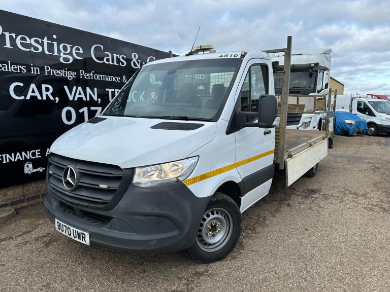 2021 REGISTERED 70REG RARE AUTOMATIC WITH AIR CON CLIMATE MERCEDES SPRINTER COVERED 117450 MILES. 3.5 TONNE LWB L3 LEGENDARY SPRINTER LONG WHEEL BASE PICK UP TRUCK DROPSIDE LORRY. 2.1 CDI 163 BHP TURBO DIESEL WITH 7 SPEED AUTOMATIC GEARBOX. 1 PLC COMPANY OWNER FROM NEW WITH FULL SERVICE HISTORY. WILL BE GIVEN FULL SERVICE INCLUDING GEAR OIL CHANGE WITH GENUINE MB PARTS AND OIL PRIOR TO HANDOVER. DRIVES BEAUTIFULLY. 3500KG 3.5T TOWING CAPACITY FROM FACTORY UPGRADE. CURRENT MOT VALID TILL 03/12/2026 WITH NO ADVISORIES. 4.325 METRE WHEELBASE WITH 1.615 METRE OVERHANG. REAR VIEW CAMERA. LIGHTWEIGHT ALUMINIUM DROPSIDES AND FRAME WITH MARINE PLY FLOORING. PASSENGER SIDE HAS SPLIT DROPBOARD FOR EASY MAN LOADING. DETACHABLE REAR LOAD COVER NET. HIGH SECURITY DEADLOCKS TO CAB. VERY RARE TO FIND WITH AIR CON CLIMATE CONTROL. AMBER FLASHING ROOF BEACON WITH MARKER LIGHTS FRONT AND REAR. BODY SIZE IS 2.05 METRE WIDE X 14 FEET / 4.26 METRE LONG. AUTOMATIC LIGHTS AND WIPERS. REAR BULKHEAD LOAD GUARD/CAGE. ACTIVE BRAKE ASSIST. MERCEDES EMERGENCY CALL SYSTEM. CRUISE CONTROL. APPLE ANDROID SMARTPHONE INTEGRATION. APPS CONNECT. BLUETOOTH TELEPHONE+AUDIO INTEGRATION. USB AUX IN MUSIC INTERFACE. DAYTIME RUNNING LIGHTS. ADAPTIVE BRAKE LIGHTS. STANDARD VAN ROAD TAX BAND 12 MONTHS PRICED 345 POUNDS. 3500 KG GROSS VEHICLE WEIGHT. 3500KG TOWING CAPACITY. 7000KG 7TONNE TRAIN WEIGHT. UNLADEN WEIGHT 2465KG, 1035KG PAYLOAD CAPACITY. SUPERB ECONOMY, BEST IN CLASS. HILL START ASSIST. CROSSWIND ASSIST. OVERHEAD STORAGE SHELVING TO CAB. UNDERSEAT STORAGE. 3 SEATER CAB. CUP HOLDERS. SIDE MARKER LIGHTS. 62MPH LIMITER, CAN BE REMOVED BY US IF REQUIRED. Bluetooth connection, Cruise control, PAS, Service indicator, Steering wheel mounted controls, Trip computer, Auxiliary input socket, Mobile phone App interface, OEM sound system, USB/iPod interface, Front electric windows, Front head restraints, Solid Paint, ABS, Drivers airbag, ESP, Traction control, Alarm, Immobiliser, Remote central locking, Cloth seat trim. CHOICE OF 2 IDENTICAL SISTER VEHICLES IN STOCK NOW. WIDE SELECTION OF MERCEDES SPRINTERS IN STOCK NOW. CHOICE OF HAND PICKED QUALITY USED VANS IN STOCK NOW. CHOICE OF MERCEDES SPRINTERS ALWAYS IN STOCK. CHOICE OF PANEL VANS, DROPSIDE PICK UPS, TIPPERS, LUTONS ALL IN STOCK NOW. FINANCE ARRANGED AT MARKET LEADING RATES. NATIONWIDE DELIVERY SERVICE AVAILABLE. ALL DEALER FACILITIES. FULL PERSONALISED VIDEOS AVAILABLE. CONTACTLESS VIEWING & PURCHASING AVAILABLE. FOR ALL ENQUIRIES PLEASE CALL JIMMY AT PRESTIGE CARS AND COMMERCIALS LIMITED. FOR MORE PICTURES PLEASE VISIT DEALER WEBSITE. SPECIALIST SUPPLIER OF PRESTIGE, PERFORMANCE & 4X4's. HONEST FRIENDLY & PROFESSIONALLY RUN FAMILY BUSINESS. 3 GENERATIONS OF EXPERIENCE. GENUINE 5 STAR SERVICE & REVIEWS TO REFLECT. BUY WITH CONFIDENCE. GOOD OLD FASHIONED NO NONSENSE CUSTOMER FIRST APPROACH. FOR FULL STOCKLIST PLEASE VISIT DEALER WEBSITE