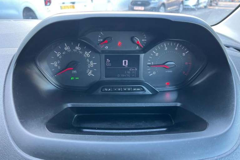 12V Socket - Dashboard, 15in Steel Wheels with Milford Wheel Cover, 6 Floor Mounted Load Securing Rings, 6 Tie Down Hooks In Load Area, 6 Way Adjustable Drivers Seat - Lumbar Adjustment and Underseat Storage, 8in Capacitive Colour Touchscreen with Connect DAB Radio - Bluetooth Handsfree and USB Socket, Air Conditioning, Automatic Activation of Hazard Warning Lights on Major Deceleration, Automatic Electric Parking Brake, Cruise Control with Programmable Speed Limiter, Cup Holders for Driver and Passenger - Side of Dashboard, Dashboard Mounted Central Locking Push Button and Auto Locking Above 7mph, Daytime Running Lights, Door Mirrors - Electrically Folding with Temperature Sensor, Door Opening Warning and Audible Lights-On Warning, Driver Seatbelt Unfastened Warning, Drivers Airbag, Electric Front Windows with One-Touch Operation, Electric Power Steering with Reach and Rake Adjustable Steering Column, Electronic Stability Control and ABS with Hill Start Assist - EBA and EBFD, Free2Move Connect Fleet Telematics (6 Month Subscription From New), Front Door Pockets with 1.5L Bottle Holder, Front Fog Lights, Full Bulkhead, Full Size Steel Spare Wheel, Hard Plastic Floor Protection in Cabin, Headlights - Automatic, Height Adjustable Halogen Headlights with Automatic Illumination and Daytime Running Lights, High Level Third Brake Light, Locking Fuel Filler Cap, Multi-Flex Modular Folding Passenger Bench Seat, Multifunction On-Board Trip Computer, Nearside Sliding Side Door, Overhead