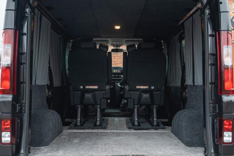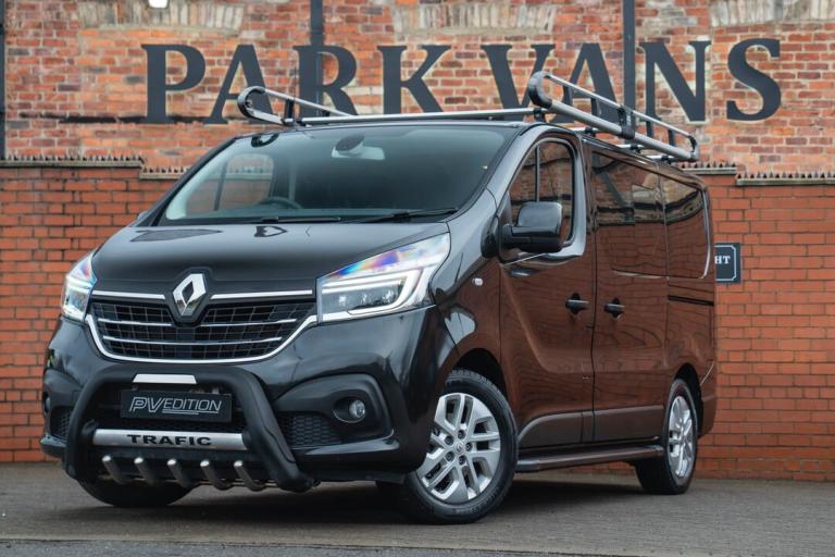 2021 RENAULT TRAFIC 2.0 DCI FINISHED IN METALLIC BLACK, 9000 MILES, SERVICE HISTORY, ONE OWNER, 2 KEYS, AUTOMATIC, TAILGATE, 170 BHP, TOP OF THE RANGE SPORT SPEC INCLUDING AIR CON, NAV, BLUETOOTH, CRUISE CONTROL, REVERSE CAMERA, PARKING SENSORS, AUTO LIGHTS, ELECTRIC WINDOWS AND MIRRORS, ALLOY WHEELS, COLOUR CODED, FRONT FOGS, HEATED FRONT SCREEN, ROOF RACK, BULLBAR, SIDE STEPS, ROOF BARS, ROOF SPOILER, CREW CAB CONVERSION WITH REMOVABLE SEATS, FULLY CARPET LINED AND INSULATED INCLUDING ROOF, FITTED WINDOWS AND BLINDS ALL ROUND, IMMACULATE THROUGHOUT, A VERY RARE VAN ONLY 25,995.00 ON THE ROAD NO VAT