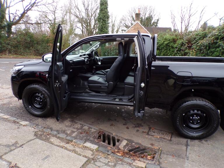 Only 34000 Miles with a full service history...Finished in Black with Black Vinyl interior. This rare Hilux Active Extended cab features, 6 speed manual transmission, air condtioning, cruise control, Radio/CD, mutli function steering wheel, electric windows and mirrors, load liner, ladder rack, rear Diff lock, Eco/power mode, heated rear screen, 17"" Black wheels. Premium warranty included. 2 keys and book pack present and is in lovely condition throughout. Make it, The Smart Choice. Car Guru's Top Rated Dealer 2018-2019-2020. AutoTrader 5.0 star reviews. Google 5 star reviews. MAKING IT THE SMART CHOICE. This, and all of our Used Double Cab Pickup Trucks are based at our Northchapel Branch in West Sussex. So if you are looking for a quality used pick up for sale, don't hesitate to call us on 01428 707004. Please call us before you visit to confirm vehicle availability and location.. 17in Steel Wheels - Black,Active Traction Control - ATC,All-Terrain Tyres,Anti Lock Braking System - ABS with Electronic Brake-Force Distribution - EBD,Auto Headlights,Aux-In Connector,BA - Brake Assist,Bluetooth Connectivity,Bumpers - Body Coloured,Cabin Protection Deck Frame,Cooler in Upper Glovebox,Dark Grey Rear Bumper,Daytime Running Lights,Emergency Brake-Light Signal - EBS - Hazard Type,Floor Mats - Rubber,Follow Me Home Headlights,Front 12V Power Outlet,Front Mudguards,Front Passenger Airbag Detector,Front Passenger Airbag On-Off Switch,Front Seat Belt Reminder,Front and Rear Power Windows,Full Spare Steel Wheel,HAC - Hill Start Assist Control,Headlight Cut-Off Reminder,Immobiliser,Inner Load Hooks on Cargo Deck,Intelligent Adaptive Cruise Control,Lane Departure Alert,Lockable Tailgate,Manual Air Conditioning,Manual Headlight Levelling,Multi-Reflector Halogen Headlights,Outer Load Hooks on Cargo Deck,Power Adjustable and Heated Door Mirrors,Power Steering,Pre-Collision System with Pedestrian Detection,Radio and CD Player with MP3 and WMA,Rear Fog Light,Rear Mudguards,Road Sign Assist,Speakers x4,Supplemental Restraint System - SRS - Airbags - 7 Airbags,TPMS - Tyre Pressure Monitoring System,Toyota Safety Sense 2,Trailer Sway Control - TSC,USB Connector,Underbody Protection Cover,Urethane Steering Wheel and Gearshift,VSC - Vehicle Stability Control