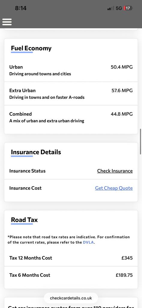 Our vehicle history check is provided for guidance only. Please check all the details with the seller before purchasing