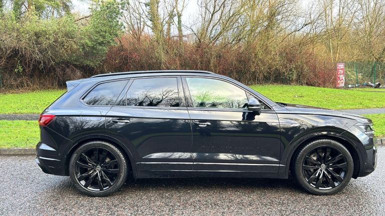 2021 Volkswagen Touareg Black Edition 3.0 Diesel V6 Auto 4WD, just Recently Fully Serviced at Volkswagen and full vehicle health check, Still under Manufactures warranty until June this year. 12 months Mot. Volkswagen's range topping SUV, Black interior leather upholstery. A genuine Black Edition example from factory, the Touareg perfectly combines style and performance, with all round usability thanks to Volkswagen's own 4 Motion All-Wheel Drive System and a torquey 3.0L Diesel V6, allowing the Touareg to remain responsive yet efficient, with enough grunt under the bonnet to comfortably tow 3,500kg (Braked). Naturally, a Top of the Range Premium SUV such as this one comes incredibly well specified, with desirable features and options including; Factory Black Edition Styling, Front & Rear Parking Sensors, 360 Surround Camera System, Heated Front Seats, Heated Steering Wheel, Electrically Adjustable Front Seats, Sat Nav, Adaptive Air Suspension, Digital Instrument Cluster, Adaptive Cruise Control, Auto Headlights with High Beam Assist, Panoramic Glass Sunroof, Electric Power Tailgate, Bluetooth Handsfree, Rear Privacy Glass, Multi-Function Steering Wheel. Hip Clear, Please only call if genuinely interested thank you.