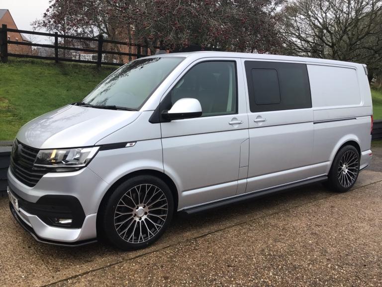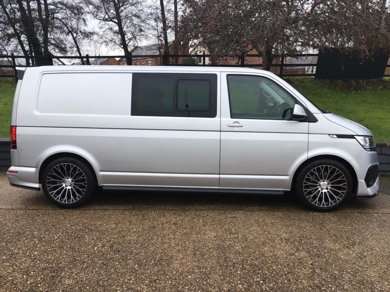 FANTASTIC LOOKING T6.1 HIGHLINE THAT HAS JUST BEEN FITTED WITH THE LV-R FRONT, REAR AND SPOILER PACK AND 20 INCH VELARE ALLOY WHEELS, HIGH SPECIFICATION INCLUDING MULTI FUNCTION STEERING WHEEL, CRUISE WHEEL, DAB RADIO, PARK PILOT WITH VISUAL AID FRONT AND REAR, TOUCHSCREEN INFOTAINMENT SYSTEM, AIR CONDITIONING, TAILGATE, TWO KEYS WITH ONE FORMER KEEPER. THIS EXAMPLE CERTAINLY STANDS OUT FTOM THE NORM AND BEING THE DESIRABLE 150 PS MODEL AND KOMBI WITH A TAILGATE THIS VEHICLE REALLY NEEDS TO BE SEEN TO BE APPRECIATED. ALL OF OUR VEHICLES ARE HAND PICKED, MAKING SURE WE ONLY OFFER THE BEST EXAMPLES TO MARKET. ALL VEHICLES COME WITH AN UP TO DATE SERVICE, 12 MONTHS MOT AND A MINIMUM OF 3 MONTHS/3000 MILES WARRANTY FOR PEACE OF MIND.PART EXCHANGE IS WELCOME.DELIVERY AVAILABLE, PLEASE CALL FOR A QUOTE.COMPETITIVE FINANCE AVAILABLE.