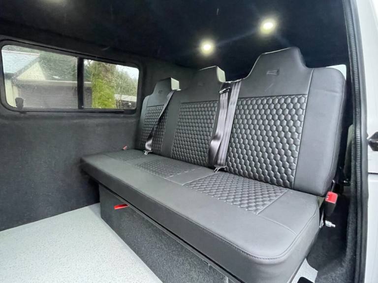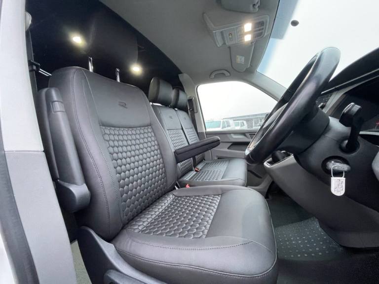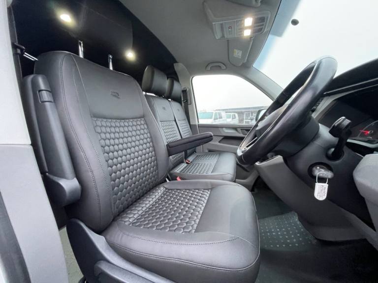 Just Arrived VW T6.1 150 Bhp 6 Speed, 6 Seat Kombi Van With Reverse Opening Bed, New Seat Trim Through out Black Hex With R Logo, Apple Car Play, Aircon, Discovery Sat Nav, Cruise Control, Rear Parking Sensors, Gloss Black Pack, Sportline Spoilers, Roof & Side Bars, New 20" Wheels, side opening side windows, Carpeted and insulated, Altro Floor, Service History, 2 Keys, We Can Arrange any conversion from full Camper to Carpet lining on this transporter or any other of our vans or your own van, Great Finance options available, Free 3 Months Standard dealer Warranty can be extended up to 3 years please ask for more information,.Discover media system APP Connect , Reverse Opening Leisure Bed, 6 seats , Apple car play / Android Auto , New 20" Wheels , 150 BHP 6 Speed Manual Euro 6, 16in Steel Wheels - 20-Hole Style, ABS - Anti-Lock Braking System, ASR - Anti Slip Regulation, Allergen Filter, Armrest - Drivers, BAS - Brake Assist System, Black Door Mirrors and Door Handles, Bumpers - Grey, Composition Colour DAB Plus Radio System with 6.5in Touch-Screen, Crosswind Assist, Cruise Control with Speed Limiter, Dash Panel with Open Stowage Compartments - Drink Holders and Lockable Glovebox, Door Mirrors - Electrically Adjustable and Heated, Driver Alert System, Drivers and Front Passengers Airbags with Front Passenger Airbag Deactivation Switch, EDL - Electronic Differential Lock, ESP - Electronic Stability Programme, Electric Windows - Front, Electromechanical Speed Sensitive Power Steering - Height and Longitudinally Adjustable Steering Column, Electronic Engine Immobiliser, Electronically Controlled Heating System, Folding Grab Handles on Roof Frame, Forward Collision Warning - Front Assist with Autonomous Emergency Braking, Half-Height Side Trim Panels and Roof Trim Panels made of Hardboard, Halogen Twin Headlights, Heat Insulating Glass in Cab, Heavy-Duty Tool Kit and Jack, Height Adjustment for Driver Seat in - Manual, Hill Start Assist, Illuminated Instruments - Dimmable, Interior Lighting with LED Technology in Load and Passenger Compartment, LED Interior Lighting - 2 Reading Lights in the Roof Console, Leather-Wrapped Multi-Function Steering Wheel, Manual Sliding Door Passenger Side, Multi-Function Display Plus, Radiator Grille with Double Chrome Trim Strip, Rear Wing Doors Without Windows, Reinforced Lashing Rings - 6, Remote Central Locking with 2 Remote Folding Keys, Rubber Floor Covering in Cab, Seats - Dual Passenger in Cab, Separate Daytime Running Lights, Single 12V Outlets - Dashboard, Single Tone Horn, Smartphone Interface, Steel Spare Wheel with Original Equipment Tyre, Sun Visor with Ticket Holder on Drivers Side and Airbag Label on Passengers Side, USB Interfaces - Type C, Volkswagen App Connect, Warning Light and Buzzer for Front Seat Belt if Unfastened, eCall Emergency System