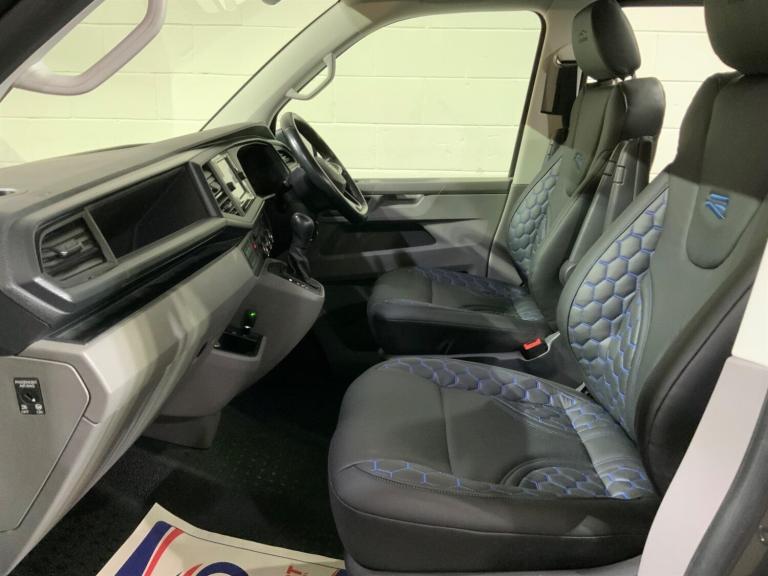 HERE WE HAVE A VOLKSWAGEN TRANSPORTER T6.1 SPORTLINE EDITION R DSG KOMBI,FINISHED IN METALIC INDIUM GREY.WE CAN DELIVER THIS VAN ANYWHERE MAINLAND UK.OR VISIT OUR INDOOR SHOWROOM WITH OVER 30 VW VANS ON STOCK.20inchALLOYSPRO SPORT COILOVERSSPORTLINE FRONT SPLITTERSPORTLINE REAR SPOILERSPORTLINE UNDER BUMPER SPOILERSPORTLINE SIDEBARSSAT/NAVXENON FRONT LIGHTSL E D REAR LIGHTSREVERSE CAMERAFRONT AND REAR PARKING SENSORSPOWER FOLDING MIRRORSAPP CONNECTGOOGLE MAPSTAILGATE MODEL2X CAPTAIN SEATS2+1 REAR SEATSALCANTARA FINISH REARTWIN SLIDING DOORSADAPTIVE CRUISEAIR/CONCRUISE CONTROLMULTI FUNCTION STEERING WHEELCARPETING TO REARTOUCHSCREEN STEREOBLUETOOTHHEATED SCREENTAILGATEDAB RADIOELECTRIC PACKCOLOUR CODED MIRRORSCOLOUR CODED BUMPERS