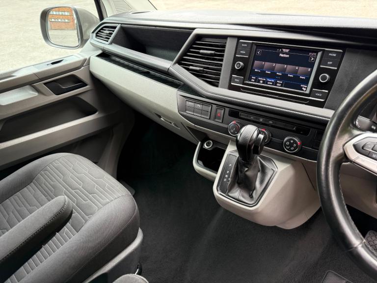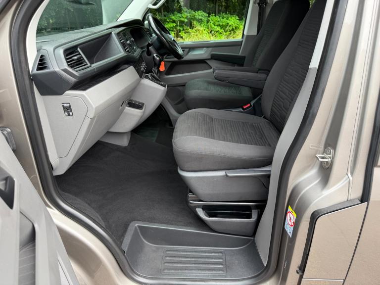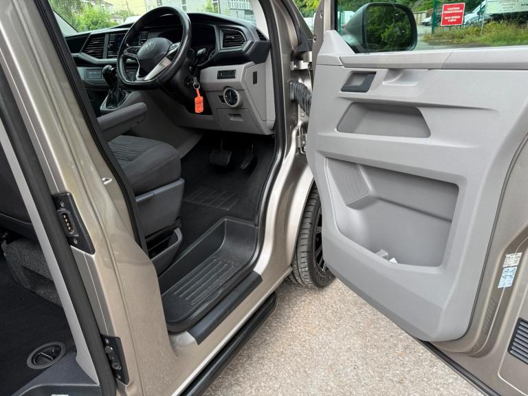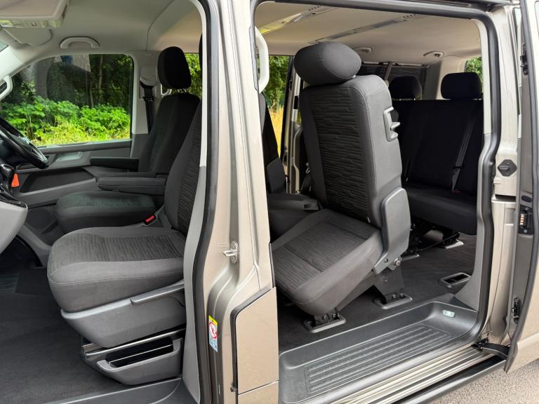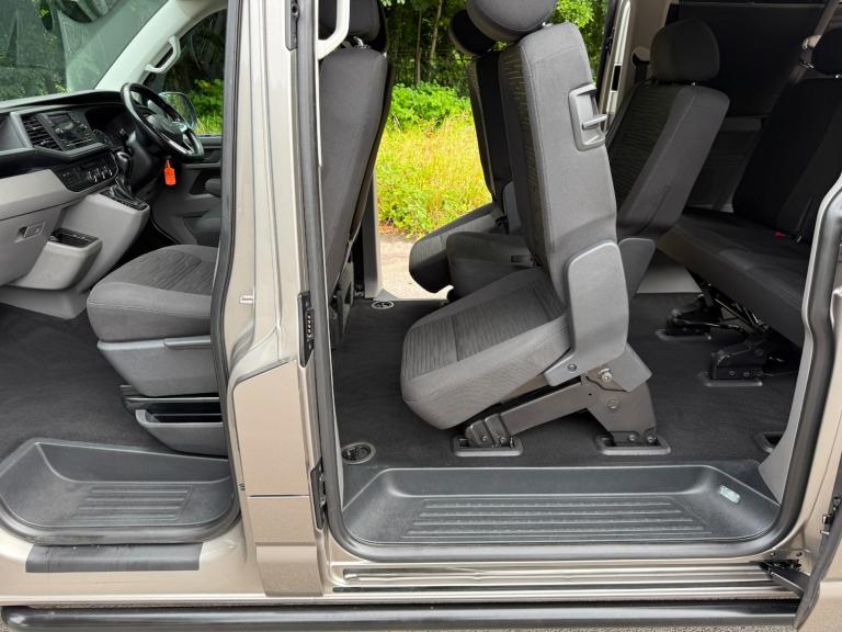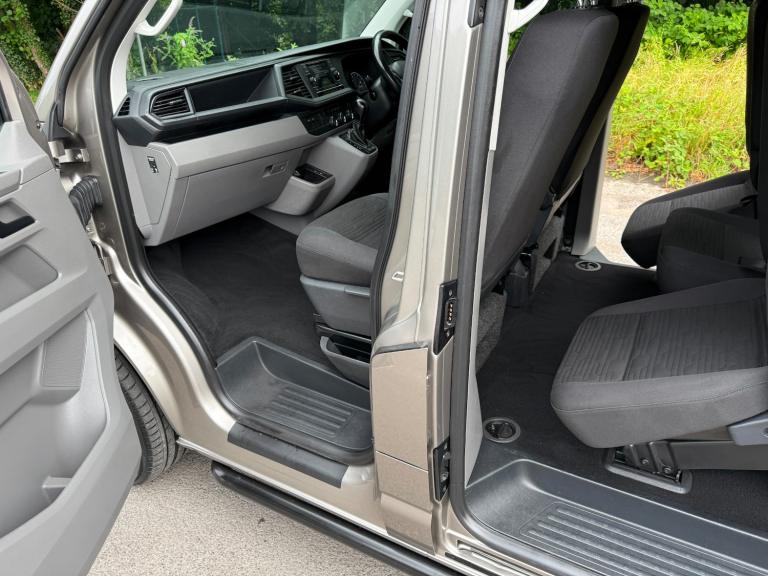 21/21 VW TRANSPORTER T6.1 150 7 SPEED DSG AUTO 8 SEAT SHUTTLE SE LWB IN CHAMPAGNE - EURO SIX WHICH HAS COVERED 46,000 MILES WITH ONE PREVIOUS OWNER AND FULL SERVICE HISTORY. THIS VEHICLE BENEFITS FROM AIR CONDITIONING, REAR HEATER, MULTI FUNCTION STEERING WHEEL, CRUISE CONTROL, FRONT AND REAR PARKING SENSORS WITH REAR VIEW CAMERA, MIDDLE ROW SINGLE SEATS WITH ISOFIX, TWIN SIDE DOORS, TAILGATE, AUTOMATIC HEADLIGHTS, ELECTRIC WINDOWS AND MIRRORS, PRIVACY GLASS, VW APP CONNECT, FULL GLOSS FRONT, BLUETOOTH PHONE PREP, USB INTERFACE, ELECTRIC WINDOWS AND MIRRORS, COLOUR CODED BUMPERS AND MIRRORS, FRONT SPOILER, REAR SPOILER, SPORTLINE SIDE BARS, ROOF BARS, 20in ALLOYS - £36,995 NO VAT - GOOD FINANCE RATES - PART EXCHANGE WELCOME - WE CAN DELIVER - WE HAVE OVER 40 TRANSPORTERS IN STOCK - SEE WEBSITE FOR MORE DETAIS - [Website URL removed]