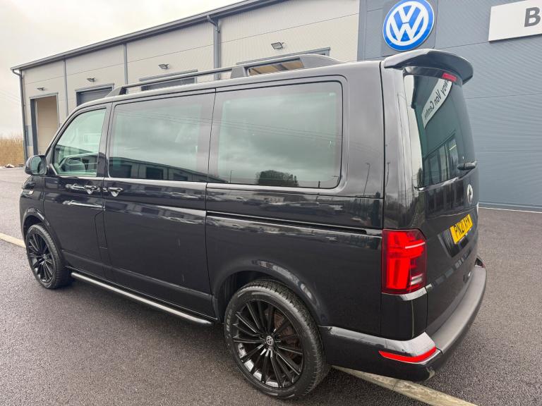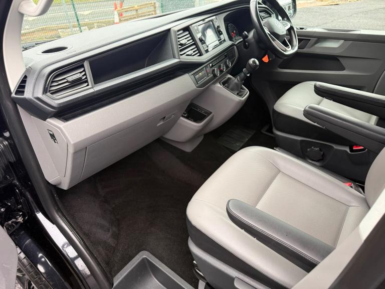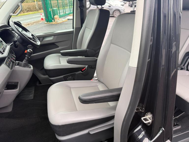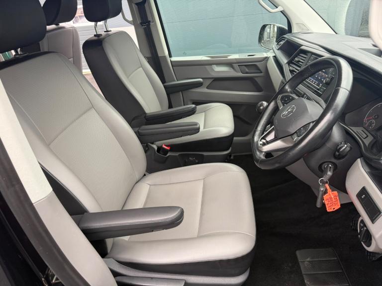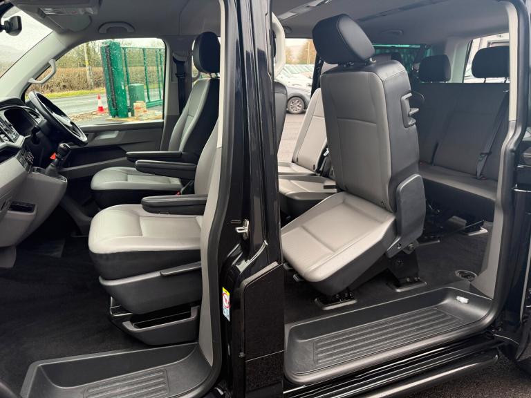 21/21 VW TRANSPORTER T6.1 8 SEAT SHUTTLE SWB IN BLACK - EURO SIX WHICH HAS COVERED 53,000 MILES WITH ONE PREVIOUS OWNER AND FULL SERVICE HISTORY. THIS VEHICLE BENEFITS FROM AIR CONDITIONING, REAR HEATER, MULTI FUNCTION STEERING WHEEL, EASY CLEAN LEATHER LOOK SEATS, CRUISE CONTROL, FRONT AND REAR PARKING SENSORS, MIDDLE ROW SINGLE SEATS WITH ISOFIX, ELECTRIC WINDOWS AND MIRRORS, PRIVACY GLASS, VW APP CONNECT, FULL GLOSS FRONT, BLUETOOTH PHONE PREP, USB INTERFACE, ELECTRIC WINDOWS AND MIRRORS, COLOUR CODED BUMPERS AND MIRRORS, FRONT SPOILER, REAR SPOILER, SPORTLINE SIDE BARS, ROOF BARS, 20in ALLOYS - £31,995 NO VAT - GOOD FINANCE RATES - PART EXCHANGE WELCOME - WE CAN DELIVER - WE HAVE OVER 60 TRANSPORTERS IN STOCK - SEE WEBSITE FOR MORE DETAIS - [Website URL removed]