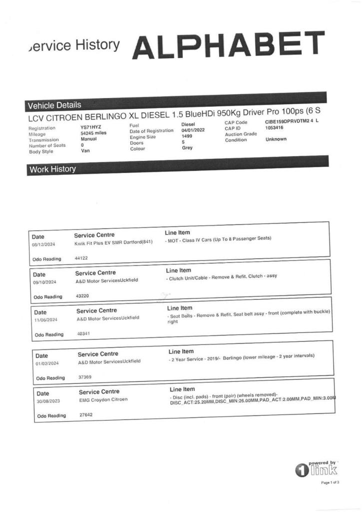 This 2022 Citroen Berlingo is a standout choice, having had only one owner since new and boasting an MOT valid until December 2026. This particular example is the 1.5 BlueHDi 950 Driver XL Pro LWB Euro 6 (s/s) 6dr, powered by an efficient 1.5 litre diesel engine. It benefits from a clear vehicle history check, offering peace of mind. Inside, youll find Automatic Dual Zone Air Conditioning for comfortable journeys, along with front and rear parking sensors and a Surround Rear Vision system that includes a rear camera, making manoeuvring easier. The Visibility Pack ensures good illumination with automatic headlights. This Berlingo is designed for practicality and efficiency, achieving an impressive 56 miles per gallon, which is excellent for its class and indicates lower running costs compared to many similar vehicles. Its substantial 4400 litre cargo volume makes it ideal for businesses or those needing significant carrying capacity. Furthermore, its Euro 6 emission classification and low CO2 emissions highlight its environmental consideration, setting it apart from older or less efficient models. + FREE DELIVERY WITHIN 10 MILES ++ At Concept-R, we believe that when you purchase a vehicle from us, you deserve nothing but the best. Thats why all of our vehicles come with the following: Comprehensive Warranty for complete peace of mind Full service including health check so you know your vehicle is in top condition HPI clear report so you can be sure the vehicle has no hidden history Fully valeted and detailed to ensure your vehicle looks and feels as good as new Home delivery available for added convenience With our commitment to quality, you can trust that youre getting the best when you choose Concept-R.FULL SERVICE HISTORY, EURO 6 COMPLIENT, ONLY 1 OWNER FROM NEW, 12 MONTHS MOT + SERVICE, £4368 FACTORY UPGRADES, Upgraded Battery and Alternator, Automatic Dual Zone Air Conditioning, Cumulus Grey, Front Passengers Lateral and Curtain Airbags, Safety Pack, Airbags - Lateral and Front Passengers, Safety Plus Pack, Front Passenger Airbag, Leather Steering Wheel, Loading Pack, 12V Socket in Dashboard, 16in Alloy Wheels - Starlit - Black, 6 Floor-Mounted Load Securing Rings, 6 Way Adjustable Drivers Seat - includes Lumbar Adjustment and Under Seat Storage, 8in Colour Touchscreen with Citroen Connect Navigation and DAB Radio - Bluetooth Handsfree - USB Socket, Acoustic Laminated Windscreen with Sound Insulating Front Windows, Air Conditioning, Airbags - Driver, Alarm - Parametric and Volumetric - Thatcham Category 1 Approved Alarm with Tilt Sensor, Automatic Activation of Hazard Warning Lights on Major Deceleration, Automatic Electronic Parking Brake, Comfort Drivers Seat, Cruise Control with Programmable Speed Limiter, Cup Holders for Driver and Passenger on Either Side of the Dashboard, Dashboard Mounted Central Locking Push Buttons and Auto Locking Above 7 MPH, Door Opening Warning Light and Audible Lights-On Warning, Driver and Passenger Seatbelt Unfastened Warning, EXTENSO Modular Folding Passenger Bench Seat with Pivoting Writing Table - Storage Under Central Seat - Load Through Hatch in Bulkhead and Load Protection Cover Compliant with ISO27956, Electric Power Assisted Steering with Reach and Rake Adjustable Steering Column, Electric Windows - Front with One Touch Operation, Electrically Folding - Adjustable Door Mirrors with Temperature Sensors, Electronic Stability Control and ABS with Hill Start Assist - EBA and EBFD, Front Door Pockets with 1.5L Bottle Holders, Front Fog Lights, Full Bulkhead, Hard Plastic Floor Protection in Cabin, Hard Plastic Floor Protection in Load Area, Height Adjustable Halogen Headlights, High Level Third Brake Light, Lockable Fuel Cap, Look Pack, Multi-Function On-Board Trip Computer, Overhead Storage Shelf, Parking Sensors - Front and Rear, Pre-Conditioning for the Citroen Box with Emergency Assistance, Remote Central Locking with Deadlocks, Rev Counter with Maintenance and Gear Efficiency - GEI - Indicators, Rolling Code Transponder Immobiliser, Side Rubbing Strips, Spare Wheel - Full Size Steel, Surround Rear Vision, Top Box Storage Compartment, Twin Sliding Side Loading Doors, Tyre Pressure Monitor, Unglazed Asymmet