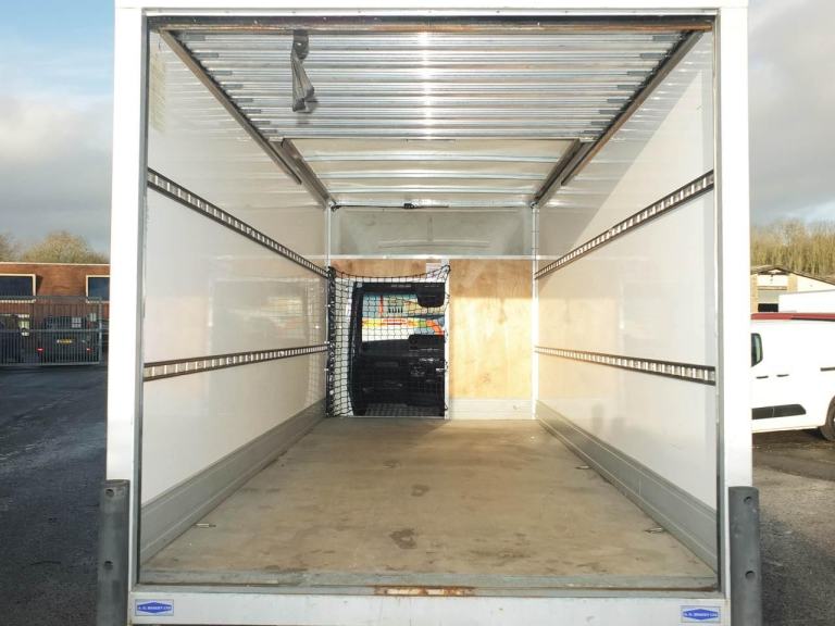 Rear Parking Sensors with Audible Warning, Electric Windows, 'Headlamp Assist' Automatic Dusk-Sensing Headlamps, ECO Engine Stop/Start Function, Keyless Start with Starter Button, Trip Computer, LED Cab Interior Light, Reversing Alarm, Walkthrough Cut-Out in Bulkhead for Direct Access from Cabin into Load Area, Removable Cargo Net Cover for Access Route, Aluminium 5-bar Treadplate / Chequerplate Cabin Floor Covering for Access Route into Rear, 1 Seat - Driver Seat Only with No Passenger Seat, Body Features: Aluminium Wide-Slat Roll-Up Hinged Truss Shutter Rear Door, Whiting Lever Handle Cam Lock with Yale Security Slam Lock, LED Interior Body Lamps with PIR Motion Detectors, Aluminium Load Restraint / Lashing / Tie Rails, GRP Panel Sides, Translucent Body Roof, Resin-Bonded 15mm Specialist Plywood Load Deck, Stow-Away Galvanised Steps for Rear Load Bed Access, Fibreglass Over-Cab Luton Storage Pod, External Full-Length Aluminium Rub Strip;