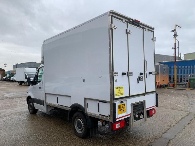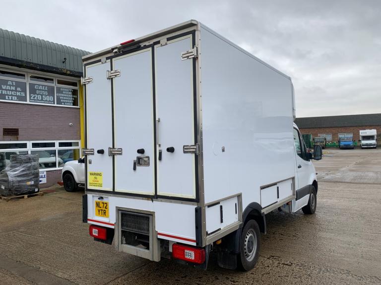 2022 72 MERCEDES-BENZ SPRINTER PROGRESSIVE 315CDI L2 FRIDGE BOX VAN, IN WHITE, 11ft FRIDGE BOX WITH UNDER FLOOR STORAGE & OVERNIGHT STANDBY, 6 SPEED, TURBO DIESEL, EURO 6, POWER STEERING, AIR BAGS, MULTI-FUNCTION STEERING WHEEL, CRUISE CONTROL, AUTO-LIGHTS, REVERSING CAMERA, DAB/APPS/MEDIA/BLUETOOTH STEREO, AIR CONDITIONING, ELECTRIC WINDOWS, REMOTE CENTRAL LOCKING, 4x KEYS, KEYLESS GO, ONE OWNER FROM NEW, 124,000 MILES FROM NEW, M.O.T UNTIL 30th NOVEMBER 2026, IT IS IN GOOD CONDITION, IT RUNS & DRIVES SUPERBLY.