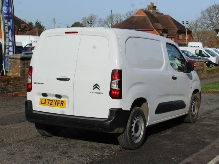 Introducing the 2022 Citroen Berlingo 1.5 BlueHDi 1000 Enterprise Edition M Panel Van 5dr, a reliable and efficient commercial vehicle with only 43300 miles on the clock. This diesel-powered panel van boasts a MOT expiry date of 30/12/2026 and is ULEZ compliant, making it an ideal choice for city driving. With 2 seats and 5 doors, this single cab vehicle has a gross weight of 2370kg. Equipped with a range of features including a 12V socket in the dashboard, an 8in colour touchscreen with Citroen Connect DAB Radio, Bluetooth handsfree, USB socket, Citroen Connect Box with emergency and assistance system, and Mirror Screen with Apple CarPlay and Android Auto capabilities, this Berlingo is ready to meet all your business needs. Whether you're looking for a reliable workhorse or a comfortable mobile office, this Citroen Berlingo is the perfect choice for any professional., OPEN 7 DAYS A WEEK - A SELECTION OF UP TO 200 CARS AND VANS AVAILABLE. Click on dealer 'VISIT WEBSITE' link for many more large photographs of this car. We are a West Sussex Trading Standards Approved 'Buy with Confidence Dealership'. Features Include: , 12v socket in dashboard, 8in colour touchscreen with citroen connect dab radio - bluetooth handsfree - usb socket, citroen connect box with emergency and assistance system, free2move connect fleet telematics (6 month subscription from new), mirror screen - apple carplay - android auto, 16in steel wheels with black centre cap, electric windows - front with one touch operation, electrically adjustable door mirrors with temperature sensor, lockable fuel cap, manual folding exterior mirrors, puncture repair kit, side rubbing strips, two-speed and intermittent front wipers, 6 floor-mounted load securing rings, air conditioning, cup holders for driver and passenger on either side of the dashboard, drivers seat - 4-way adjuctable with adjustable headrests, front door pockets with 1.5l bottle holders, full bulkhead compliant with iso27956, hard plastic floor protection in cabin, nearside side sliding door, overhead storage shelf in cabin, single passenger seat, top box storage compartment, unglazed asymmetric rear doors opening to 180 degrees, airbags - driver, alarm - parametric and volumetric - thatcham category 1 approved alarm with tilt sensor, automatic activation of hazard warning lights on major deceleration, dashboard mounted central locking push buttons and auto locking above 7 mph, door opening warning light and audible lights-on