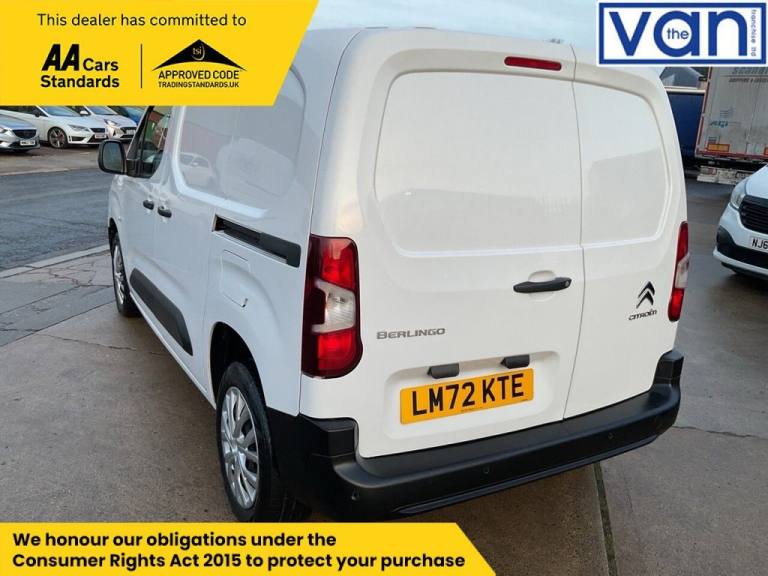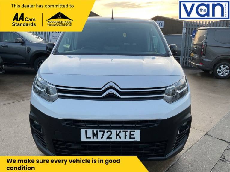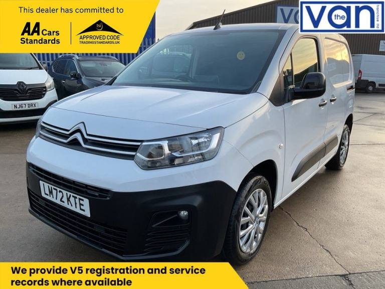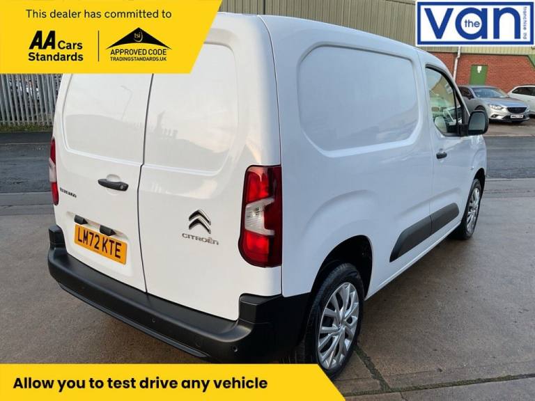 This 2022 Citroen Berlingo is a standout choice, having had only one owner from new and boasting an MOT valid until October 2026, ensuring peace of mind for years to come. This Enterprise M Pro SWB model features a 1.5 litre BlueHDi diesel engine, meeting Euro 6 emissions standards. It comes with a 3 month warranty for added security. Notable features include rear parking sensors for easier manoeuvring, and Mirror Screen technology with Apple CarPlay and Android Auto integration, allowing seamless connection of your smartphone. Youll also find height adjustable halogen headlights with automatic on function, an 8in colour touchscreen with Citroen Connect DAB radio, Bluetooth handsfree, and a USB socket. For comfort, it includes air conditioning. The Citroen Berlingo Enterprise M Pro offers impressive practicality and efficiency. Its fuel economy is a highlight, achieving an excellent 56 miles per gallon, which is better than many vehicles in its class. This model also boasts low CO2 emissions, contributing to its environmental credentials. For those needing to transport goods, the generous cargo volume of 3900 litres provides ample space, making it a highly versatile option for both business and personal use. The vehicle history check is clear, further confirming its excellent condition. Here at The Van Franchise Limited we have hand selected every vehicle that is available for sale. Check out our reviews on facebook and google. We dont sell new vans but we appreciate at any price its a big purchase for you and we never take that for granted and will do everything we can to make every van look its best. .12V Socket in Dashboard, 16in Steel Wheel - Twirl Wheel Trim, 6 Floor-Mounted Load Securing Rings, 6 Way Adjustable Drivers Seat - includes Lumbar Adjustment and Under Seat Storage, 8in Colour Touchscreen with Citroen Connect DAB Radio - Bluetooth Handsfree - USB Socket, Air Conditioning, Airbags - Driver, Alarm - Parametric and Volumetric - Thatcham Category 1 Approved Alarm with Tilt Sensor, Automatic Activation of Hazard Warning Lights on Major Deceleration, Automatic Electronic Parking Brake, Citroen Connect Box with Emergency and Assistance System, Cruise Control with Programmable Speed Limiter, Cup Holders for Driver and Passenger on Either Side of the Dashboard, Dashboard Mounted Central Locking Push Buttons and Auto Locking Above 7 MPH, Door Opening Warning Light and Audible Lights-On Warning, Driver and Passenger Seatbelt Unfastened Warning, Electric Power Assisted Steering with Reach and Rake Adjustable Steering Column, Electric Windows - Front with One Touch Operation, Electrically Folding - Adjustable Door Mirrors with Temperature Sensors, ESC with Hill Start Assist - ABS Braking including EBA and EBFD, EXTENSO Modular Folding Passenger Bench Seat with Pivoting Writing Table - Storage Under Central Seat - Load Through Hatch in Bulkhead and Load Protection Cover Compliant with ISO27956, Free2Move Connect Fleet Telematics (6 Month Subscription From New), Front Door Pockets with 1.5L Bottle Holders, Front Fog Lights, Full Bulkhead, Hard Plastic Floor Protection in Cabin, Height Adjustable Halogen Headlights, High Level Third Brake Light, Lockable Fuel Cap, Mirror Screen - Apple CarPlay - Android Auto, Multi-Function On-Board Trip Computer, Nearside Side Sliding Door, Overhead Storage Shelf, Rear Parking Sensors, Remote Central Locking with Deadlocks, Rev Counter with Maintenance and Gear Efficiency - GEI - Indicators, Rolling Code Transponder Immobiliser, Side Rubbing Strips, Spare Wheel - Full Size Steel, Top Box Storage Compartment, Two-Speed and Intermittent Front Wipers, Tyre Pressure Monitor, Unglazed Asymmetric Rear Doors Opening to 180 Degrees, Visible VIN at Base of Windscreen