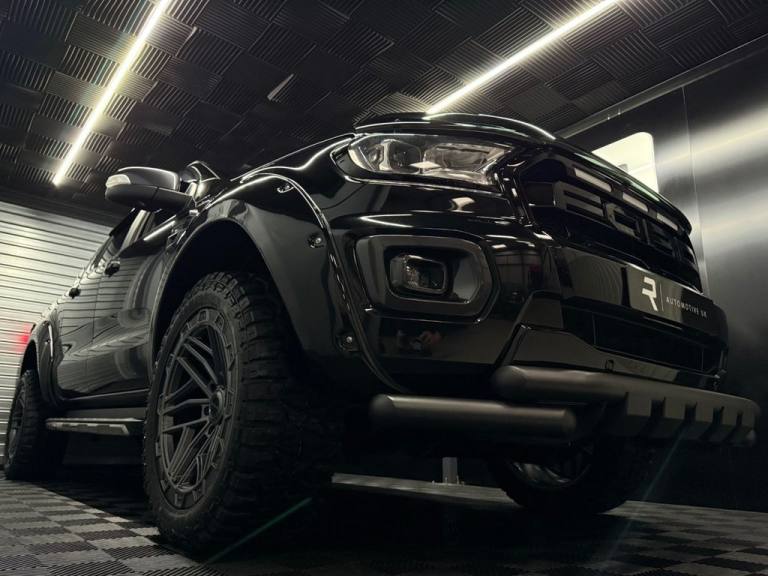 R Automotive are pleased to present this Bespoke One owner from new Ford Ranger Wildtrack finished in Agate Metallic Black riding on 20" Gloss anthracite Motion R Alloy Wheels Paired with brand new All Terrain Comforser CF9000 XL Tyres. The road presence of this Wildtrak has been enhanced with the addition of a full body kit consisting of one piece, body panel bolted, Extreme Wide Arches in gloss black, Aggressive Lower satin black nudge Bar, Exterior Black Pack covering Roof Rails, rear bed side trims, Front Bumper lower panel. Also fitted with the Gloss black Raptor style grille with LEDs, Front and Rear Light Surrounds in Gloss black, Smoked Wind Deflectors and Bonnet deflector. Key features include - Factory electric roller bed shutter, Lane Assist, Reverse camera with front and rear sensors, Apple/Android CarPlay, DAB, Bluetooth phone pairing with music streaming, Cruise control, Auto lights & Wipers, folding mirrors, heated leather-trimmed seating with an 8-way adjustable drivers seat and 4 colour Ambient lighting. Full Ford Main dealer service history, Vehicle has just been MOTd and is ready to drive away. The 2.0 EcoBlue diesel gives 369 NM of Torque and a combined fuel consumption of 30.7 mpg paired with a 10-speed automatic transmission and switchable four-wheel drive. This vehicle is HPI clear with 0 previous owners shown on the V5. A 3-month warranty is included and can be extended up to 12 months at £540 for added peace of mind. Viewing is by appointment only, so please call or email to arrange. Competitive finance options are available. View the vehicle on our website to use the finance calculator and choose a deposit and term that suits you. Apply online in minutes. Part exchange is welcome. Call or email to reserve this car with a £250 deposit. Visit our website to view 50+ high resolution images of this vehicle..18in Alloy Wheels - 8in Boulder Grey-Machined, 2 Key Fobs, ABS - ESP and Roll-Over Mitigation, Airbags - Curtain, Airbags - Driver and Front Passenger, Airbags - Drivers Knee Bolster, Airbags - Front Side, Body Coloured Plastic Front Bumpers, Boulder Grey Exterior Door Handle, Boulder Grey Exterior Mirror Finish, Boulder Grey Radiator Grille, Boulder Grey Step Design Rear Bumper, Cargo Box Power Point Plug, Chrome Lift -Decklid Handle, Collision Mitigation System, Cruise Control with ASLD -AEB and ISA, Day-Night Inside Mirror, Daytime Running Lamps, Double Locking Power Door Lock with Flip Key, Driver Seat Back Mounted Map Pocket, Dual Control System - EATC, Dual Power Heated Fold Back Mirrors with Puddle Lamps and Signal, Dyno Grey Sports Hoop with Side Rails, EPAS - Electric Power Assisted Steering, Ebony Headliner, Electrically-Operated Windows with One-Shot Drivers Window, Electrochromic Inside Mirror, Fixed Rear View Camera, Ford SYNC 3 Single CD-DAB Radio - TMC and Active Noise Cancelling, FordPass Connect, Front Parking Aid, Front Seats - Driver and Passenger Heated Seats, Front Splash Guard - Mud Flaps, Gearshift Knob - Leather, Headlights - LED, Heated Windshield and Rear Window, High Mounted Stop Lamp with Cargo Light, ISOFIX Child Safety Seat Attachments, Inside Chrome Door Handles, Intelligent Speed Assistance, Interior Ambient LED Lighting, LED Front Fog Lamps, Lane Keeping Aid, Leather Seat Trim, Load Box Bedliner, Load Box Bedliner - Power Point and Tie Down Hooks, Load Rest, Loadbox Inside Tie Down Hooks, Locking Rear Axle, Locking Wheel Nuts, Moulded in Colour Tailgate Handle, Mud Flaps - Rear, Painted Front Fender Grill, Passive Anti-Theft System, Passive Keyless Entry and Start, Power Converter, Power Tailgate Lock, Premium Front and Rear Floor Mats, Privacy Glass, Rain Sensitive Windshield Wipers, Rear Bumper Chromed Steel Step, Rear Parking Sensors, Rear Power Point Plug, Roof Rails, Roof Storage for Driver Sunglasses, Seats - Drivers 8-Way Adjustment, Side Step with Brushed Inserts, Spare Wheel Lock, Sport Leather Stitched Steering Wheel, Sports Bar with High Mounted Brake Light, Sports Hoop, TSR - Traffic Sign Recognition, Tailgate with Easy-Lift - Lower Mechanism, Thatcham Category 1 Security System, Tie Down Rail with Rope Hooks, Tyre Pressure Sensors, Under Body Protection, Under Hood Engine Cover, Wildtrak Door Trim Panel Insert, Agate Black, Journey Grain Partial Leather - Ebony, Mountain Top Lockable Tonneau Cover - Load Box Be