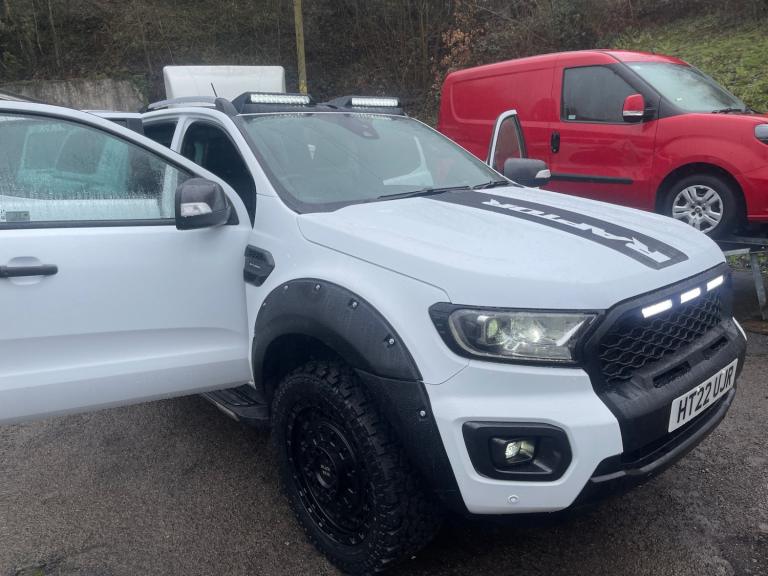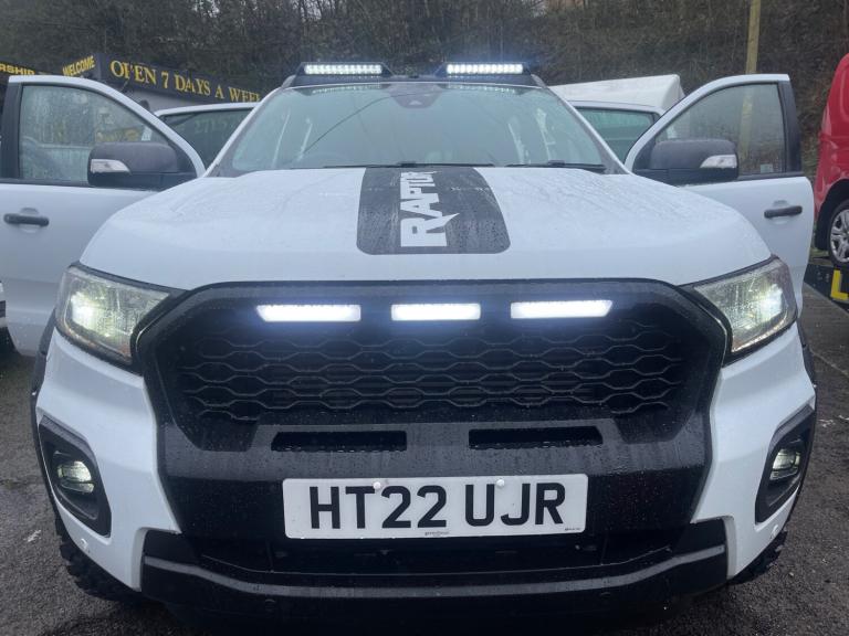 VAT IS TO BE ADDED TO THIS TRUCK. RAPTOR STYLE PACK, DIRECT IN FROM FORD LEASE AND HAS BEEN EXTREMELY WELL LOOKED AFTER FROM BRAND NEW AND FULLY MAINTAINED THROUGHOUT WITH A TOTAL OF 8 X SERVICES , WET-BELT CHANGED AT 94541 MILES . LAST FULL VEHICLE INSPECTION CARRIED OUT AT 111172 MILES. ULEZ COMPLIANCE REPORT, RAC MECHANICAL INSPECTION REPORT SHEET, CONDITION REPORT, 5 X PAGE HPI REPORT, MILEAGE VERIFICATION REPORT. A BRAND NEW SET OF 20 INCH BLACK BEAR SATIN BLACK FORGED ALLOY WHEELS COMPLETE WITH BRAND NEW LOAD RATED ALL TERRAIN TYRES HAVE RECENTLY BEEN FITTED, RAPTOR GRILL COMPLETE WITH DAYTIME NEON RUNNING LIGHTS, RAPTOR STYLE GLOSS BLACK SURROUND LED ROOF BAR LIGHTS COMPLETE WITH REMOTE AND VARIOUS LIGHT SEQUENCE SETTINGS. RAPTOR DECALS, RAPTOR WIDE ARCH PACK, REAR GLAZED TRUCKMAN CANOPY, FACTORY FITTED REAR LOAD LINER. TOW PACK, ALLOY WHEELS, ROOF RAILS, HDD NAVIGATION SYSTEM, HD REAR VIEW CAMERA, PARKING SENSORS, COLOUR CODED, FULL BLACK LEATHER WITH WHITE CONTRASTING STICHING, QUICK CLEAR HEATED WINDSCREEN, POWER FOLDING MIRRORS COMPLETE WITH LED COURTESY LIGHTING, HEATED SEATS, QUICK CLEAR HEATED MIRRORS, SIDE STEPS. LOW RATE FINANCE IS AVAILABLE SUBJECT TO STATUS AND TERMS AND CONDITIONS. WE CAN DELIVER THIS TRUCK ANYWHERE THROUGHOUT SCOTLAND / IRELAND / ENGLAND / WALES AND ALL OTHER UK OUTER ISLANDS DELIVERED TO INCLUDING THE CHANNEL ISLANDS. MORE IMAGES TO FOLLOW UPON ARRIVAL FROM FORD LEASE.
