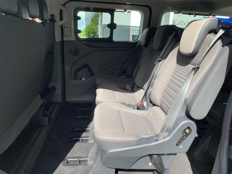This 2022 Ford Tourneo Custom 2.0 320 EcoBlue Titanium Auto L2 Euro 6 (s/s) 5dr boasts a single owner from new, offering excellent provenance. As a 320 Titanium model, it features a powerful 130 bhp 2.0 litre EcoBlue diesel engine, meeting Euro 6 emissions standards. For enhanced comfort and convenience, this Tourneo Custom is equipped with front and rear manual air conditioning, front and rear parking sensors, and door mirrors with blind spot eliminators and integrated side indicators, including BLIS (Blind Spot Assistance).The Titanium trim level signifies a high specification, and the inclusion of these features demonstrates a commitment to driver and passenger comfort and safety. The automatic transmission further contributes to a smooth and effortless driving experience, making this Ford Tourneo Custom a well appointed and practical choice for a variety of needs.