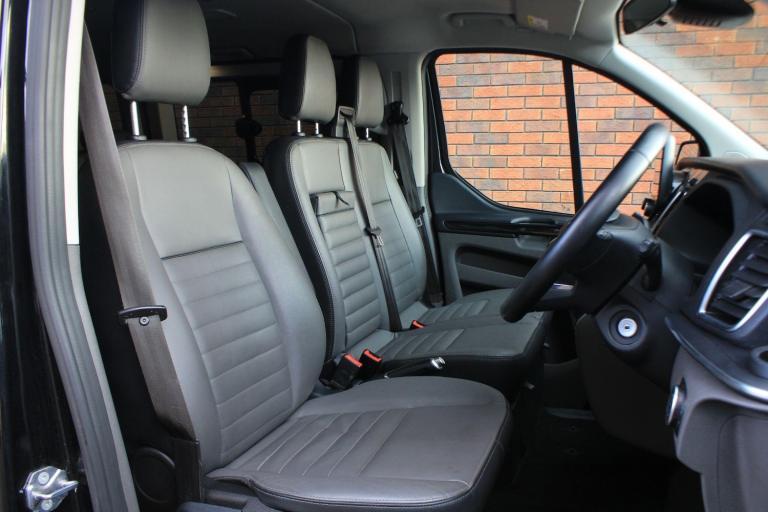 OVER 200 VEHICLES IN GROUP STOCK. Finished in Agate Black with Palazzo leather interior. Features include ICE pack 25 with adaptive cruise control, Apple CarPlay and Android Auto, SYCN satellite navigation, front splitter and rear spoiler in gloss black, 20 multispoke alloy wheels in gloss black, front and rear park distance control with rear view camera, heated front seats with driver electric adjustment, air conditioning, second and third row seating (9 seats), Bluetooth connectivity with media streaming, DAB digital radio, automatic headlights, drive modes, heated front windscreen, electric folding exterior mirrors, rear privacy glass, sliding rear passenger doors, roof rails, voice control, multifunctional leather steering wheel, 6 speed manual transmission plus much more standard specification. This Tourneo Custom is offered in excellent condition having covered 82100 miles from new by its 1 owner. The van comes complete with a service history to include the wetbelt replacement. Plus VAT. GOOGLE YORKSHIRE VEHICLE SOLUTIONS FOR OUR CUSTOMER REVIEWS. PLEASE CALL OR E-MAIL FOR FURTHER DETAILS OR TO ARRANGE A PERSONALISED VIDEO OR VIEWING. THIS DEALER HAS COMMITTED TO AA CARS STANDARDS AND IS APPROVED BY THE CHARTERED TRADING STANDARDS INSTITUTE.