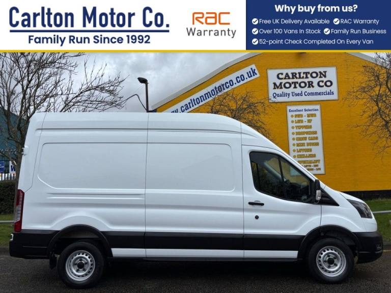 Free UK Delivery Euro 6 ULEZ, Air Con FORD TRANSIT 2.0 350 L3 H3 LEADER LWB HIGH ROOF P/V ECOBLUE 129 BHP (RWD) Directly to ourselves from Lease company fully documented service history printout, Air Con,Bluetooth DAB Radio, Traction Control Electric Windows, We know this is possibly one of the best examples around by far It is Ideal model for a conversion Camper / Day van All our vehicles are prepared to the highest standards, RAC 52 point inspection, Mot / Oil & filter service on all vans if required. RAC Warranty included & extended warranties up to 36 months are available Also offer Free UK Delivery T&C Apply please check with our team. We are an RAC DEALER meaning you can buy in complete confidence! This also means we can offer a choice of extended warranty packages on all of our quality used commercias. We offer very competitive finance packages for all credit scores just hit the apply now button its so simple or get in touch with one of our team! [ We are family owned and run since 1992 ] + VAT We only got bigger by been better- Leaders not followers All our vehicles are prepared to the highest standards, RAC 52 point inspection, Mot / Oil & filter service on all vans if required. RAC Warranty included & extended warranties up to 36 months are available Also offer Free UK Delivery T&C Apply please check with our team. We are an RAC DEALER meaning you can buy in complete confidence! This also means we can offer a choice of extended warranty packages on all of our quality used commercias. We offer very competitive finance packages for all credit scores just hit the apply now button its so simple or get in touch with one of our team! [ We are family owned and run since 1992 ] + VAT We only got bigger by been better- Leaders not followers.16in Steel Wheels, 4.2in Monochrome TFT Non-Touch Screen with New SYNC 4 System, Airbags - Driver, Anti-Lock Braking System - ABS with Electronic Brake Force Distribution - EBD, Assist Handle - Located on B-pillar, Battery - Cold Start -20 Degree C, Black Dual Manual Signal Mirrors, Bottle Holder - Twin 2 litre Bottle Capacity - Facia-Mounted, Bulkhead - Full Steel, Bumper - Front Body Colour - Partial, Cargo Door Handle - Self Colour, Curve Control, Door Handles - Self Coloured, Door Mirror - Manual Adjust - Short Arm, Door Mirrors - Blind Spot Eliminator and Integrated Side Indicator, Door Mirrors - Manual Adjust, Doors - Unglazed Rear Doors - Hinged for 180 Degree Opening - Positive Stop At 90 Degree, EBA - Emergency Brake Assist, Electrically-Operated Front Windows with One-shot Up-down on Drivers Side, Emergency Brake Warning, EPAS - Electric Power Assisted Steering, ESP and Hill Launch Assist, Extra Heavy Duty Alternator, Ford Easy Fuel Capless Refuelling System with Misfuel Inhibitor, Front Grille - Self Colour, Frozen White, Gearshift Indicator Light, Headlights - Halogen with Daytime Running Lights, Headlights - Levelling Control, Headlights Courtesy Delay - 30 Seconds Duration, Headlining - Cab - Moulded, Heater - Positive Thermal Coefficient - PTC, High Mounted Stop Lamp, Immobiliser - Safeguard Passive Anti-Theft System - PATS - Insurance-Approved Category 2 Immobiliser, Kerbside Side Load Door, LAC - Load Adaptive Control, Less Steel Spare Wheel, Load Compartment - DIN 75410 Compliant Tie-down Loops, Locks - Audio Mislock Feedback - Audible Signal if a Door is Ajar When Locking Activated, Locks - Auto Locking on Drive-Away - Doors Automatically Lock at 8 kmh or 5 mph, Locks - Auto Relocking - Doors Relock after 45 Seconds if no Door is Opened, Locks - Configurable Unlocking - 2-Stage Unlocking, Locks - Key Operated Bonnet Release, Locks - Power Door Deadlocks - Shielded with Strengthened Mountings, Manual Air Conditioning, Mechanical Parking Brake, MyKey, Power Point Socket - 2x 12V, Rear Axle Alt A, Rear Bumper - Self Colour with Integrated Step, Remote Central Locking with One Key Fob, RSC - Roll Stability Control, Seatbelts - 3 Point Diagonal Inertia Reel - All Seats, Seats - Drivers 4-Way Adjustment with Armrest, Selectable Drive Mode, Single Rear Wheels, Spare Wheel - Steel, Standard Duty Battery, Steering Column - Rake and Reach Adjustment, Steering Wheel - 4 Spoke Polyurethane, Storage - Front Door Map Pockets, Storage - Underseat Stowa