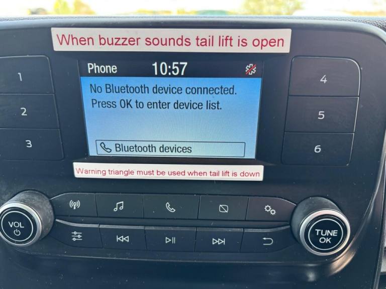 Service history 1 owner Electric tail lift bluetooth DAB radio 12 months MOT 6 months warranty.16in Steel Wheels, 4.2in Monochrome TFT Non-Touch Screen with New SYNC 4 System, Airbags - Driver, Alternator - Standard Duty 165Amp, Battery - Cold Start -20 Degree C, Black Dual Manual Signal Mirrors, Bottle Holder - Twin 2 litre Bottle Capacity - Facia-Mounted, Bumper - Front Body Colour - Partial, Config Interior Lighting Battery Saver - 10 Minutes, Curve Control, Day-Night Inside Mirror, Daytime Running Lamps, Door Mirror - Manual Adjust - Short Arm, Door Mirrors - Blind Spot Eliminator and Integrated Side Indicator, Driver Large Head - Short Arm Mirror, Drivers 8-Way Seat Adjustable with Armrest, Dual-Circuit Front and Rear Discs with Self-Adjusting Servo-Assistance and ABS, EBA - Emergency Brake Assist, EPAS - Electric Power Assisted Steering, ESP and Hill Launch Assist, Electrically-Operated Front Windows with One-shot Up-down on Drivers Side, Fixed Rear Windows, Ford Easy Fuel Capless Refuelling System with Misfuel Inhibitor, Front Grille - Self Colour, Gearshift Indicator Light, Gearshift Knob - Moulded, Halogen Headlights with Courtesy Delay, Header Courtesy Light, Headlights - Halogen Projector, Headlights - Levelling Control, Headlights - Quad Beam, Headlining - Cab - Moulded, Immobiliser - Safeguard Passive Anti-Theft System - PATS - Insurance-Approved Category 2 Immobiliser, Interior Trim Accent Pack A, LAC - Load Adaptive Control, Less Steel Spare Wheel, Lid Glove Box, Locks - Audio Mislock Feedback - Audible Signal if a Door is Ajar When Locking Activated, Locks - Auto Locking on Drive-Away - Doors Automatically Lock at 8 kmh or 5 mph, Locks - Auto Relocking - Doors Relock after 45 Seconds if no Door is Opened, Locks - Configurable Unlocking - 2-Stage Unlocking, Locks - Key Operated Bonnet Release, Locks - Power Door Deadlocks - Shielded with Strengthened Mountings, Mechanical Parking Brake, MyKey, Overhead Console, Partial Molded Headliner, Power Point - 2 x 12V Located on Instrument Panel and in Stowage Bin, RSC - Roll Stability Control, Rear 2-Way Head Restraint, Rear Axle Alt A, Recirculation Heater - Front, Remote Central Locking with One Key Fob, Roof Marker Lights, Rubber Partial Floor Cover, Seatbelts - 3 Point Diagonal Inertia Reel - All Seats, Selectable Drive Mode, Single Rear Wheels, Steering Column - Rake and Reach Adjustment, Steering Wheel - 4 Spoke Polyurethane, Storage - Drivers Side Storage Compartment on Facia Top, Storage - Front Door Map Pockets, Storage - Underseat Stowage Compartment Under Dual Passenger Seat, Suspen