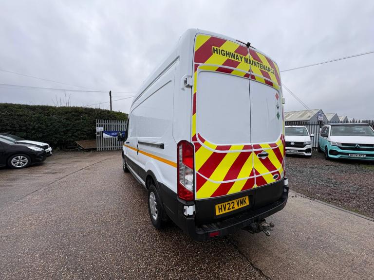 2022 Ford Transit 2.0 EcoBlue 130ps H3 Trend finished in great condition and ready to go straight to work. This is the high roof model offering excellent load space and easy access making it ideal for trades delivery or conversion.The van drives very well and feels strong and smooth on the road. Being the Trend model it comes with some great factory features including Apple CarPlay cruise control and electric mirrors making longer journeys far more comfortable.In the rear it is already kitted out with full workshop racking so you can organise tools and equipment properly from day one. It is also fitted with roof beacons spotlights and rear chevrons compliant with Chapter 8 which makes it perfect for site or roadside work. Tow bar fitted so it is ready to pull a trailer when needed.A very practical well equipped Transit that saves you money on extras and setup costs. Clean inside and out and a solid example of a reliable work van.Viewings and inspections welcome. Finance may be available. Any questions just ask.