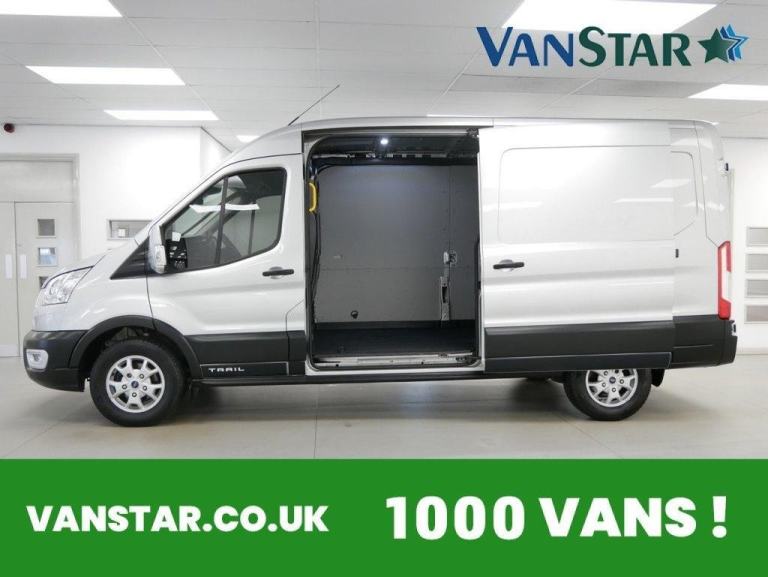 , OVER 600 VANS IN STOCK !, 2022 PLATE, ONLY 1 OWNER, JUST 29000 MILES FROM NEW, SERVICED !, EURO 6 SPEC, HIGHER SPEC TRAIL EDITION, L3 LONG WHEELBASE - H2 HIGH ROOF MODEL, HIGHER 170 BHP OUTPUT ENGINE, FACTORY SAT NAV + CARPLAY MEDIA, AIR CON, ALLOYS, 3 X SEATS, HEATED FRONT SCREEN, REMOTE CENTRAL LOCKING, ELECTRIC WINDOWS + MIRRORS, ADAPTIVE CRUISE CONTROL + LIMITER, FACTORY FRONT and REAR PARKING SENSORS, FACTORY REAR VIEW CAMERA, CARGO LINING - PLY-LINED, BULKHEAD, GREAT SPEC !, PHYSICAL STOCK !, 16in Alloy Wheels - 10-Spoke, 2nd Remote Key, Airbags - Driver, Anti-Lock Braking System - ABS with Electronic Brake Force Distribution - EBD, Assist Handle - Located on B-pillar, Auto Lights and Wipers, Battery - Cold Start -20 Degree C, Bluetooth, Bodyside Mouldings - Wide - Self Colour, Bottle Holder - Twin 2 litre Bottle Capacity - Facia-Mounted, Bulkhead - Full Steel, Cargo Door Handle - Self Colour, Contrast Cladding, Courtesy Light - Header-Mounted - Front Maps Lights with Theatre Dimming, Cruise Control with Adjustable Speed Limiter, Curve Control, Door Handles - Self Coloured, Door Mirrors - Blind Spot Eliminator and Integrated Side Indicator, Doors - Unglazed Rear Doors - Hinged for 180 Degree Opening - Positive Stop At 90 Degree, Dual-Circuit Front and Rear Discs with Self-Adjusting Servo-Assistance and ABS, EBA - Emergency Brake Assist, EPAS - Electric Power Assisted Steering, ESC - Electronic Stability Control, Easy Clean Load Floor, Electric Windows - Front, Emergency Brake Warning, FORD Grille, Floor Covering - Cab Easy-Clean Rubber, Fold Out Front Passenger Seat Table, Ford Easy-Fuel Capless Refuelling System, Ford SYNC with 8in TFT Screen, Front - Independent MacPherson Struts - Coil Springs - Stabiliser Bar and Gas-Pressurised Shock Absorbers - Rear - Leaf Springs and Gas-Pressurised Shock Absorbers, Front Bumper - Self Colour, Front Fog Lights, Front Grille - Self Colour with Chrome Surroud, Front Passengers Seat - Dual Fixed with Split Lift Up Cushion for Stowage and Fold Out Table, Gearshift Indicator Light, Glovebox - with Lockable Lid and A4 File Storage Capability, Headlights - Halogen Projector Containing LED Daytime Running Lights and Static Cornering, Headlights - Levelling Control, Headlights Courtesy Delay - 30 Seconds Duration, Headlining - Cab - Moulded, Heated Front Windscreen, Heater - Positive Thermal Coefficient - PTC, Heavy Duty Alternator, Hill Start Assist, ICE Pack 21, Immobiliser - Safeguard Passive Anti-Theft System - PATS - Insurance-Approved Category 2 Immobiliser, LAC - Load Adaptive Control, Less Steel Spare Wheel, Load Compartment - DIN 75410 Compliant Tie-down Loops, Loadspace Compartment Light, Locks - Audio Mislock Feedback - Audible Signal if a Door is Ajar When Locking Activated, Locks - Auto Locking on Drive-Away - Doors Automatically Lock at 8 kmh or 5 mph, Locks - Auto Relocking - Doors Relock after 45 Seconds if no Door is Opened, Locks - Configurable Unlocking - 2-Stage Unlocking, Locks - Key Operated Bonnet Release, Locks - Power Door Deadlocks - Shielded with Strengthened Mountings, Manual Air Conditioning, Mechanical Limited Slip Differential, Mudflaps - Rear, MyKey, Overhead Storage Console, Parking Aid - Front and Rear with Front Fog Lamps, Passenger Side Sliding Load Door - Solid, Power Fold Door Mirrors - Heated, Power Point - 2 x 12V Located on Instrument P