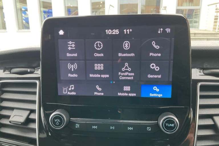 HEATED FRONT SEATS Provide comfort in any weather, CRUISE CONTROL provides extra comfort on longer journeys allowing you take your foot off the acceleration whilst just focusing on steering the vehicle, AUTOMATIC LIGHTS AND WIPERS turns the headlamps on in low light situations and uses a rain sensor near the interior mirror to automatically turn on the wipers when moisture is detected, BLUETOOTH HANDS FREE WITH VOICE CONTROL allows you to operate both your mobile phone and Ford audio system - controlling several functions using a set list of simple voice commands, QUICKCLEAR HEATED WINDSCREEN uses ultra thin filaments that superheat to de-ice and de-mist your windscreen as well as help de-freeze the wipers and works in seconds, FRONT AND REAR PARKING SENSORS are designed to help you park more confidently helping you judge the distance between your vehicle and obstacles both in front and behind you, AIR CON, Thatcham category 1 alarm, Auto start/stop system, Vehicle maintenance monitor, Automatic windshield wiper, 16 6.5 alloy wheels, Front manual air conditioning, Anti-lock brake system, Remote central locking, Driver's airbag, PAS, Recirculation heater, Spare wheel, Headlamp levelling, 2nd row three seat wide bench, Rear mudflaps, Electronic Stability Programme, Trip computer, Glazed bulkhead, Height adjustable head restraints, Cloth upholstery, 3 point seatbelts for all seats, Height adjustable drivers seatbelt mount, Map reading lights, Reach and rake adjustable steering
