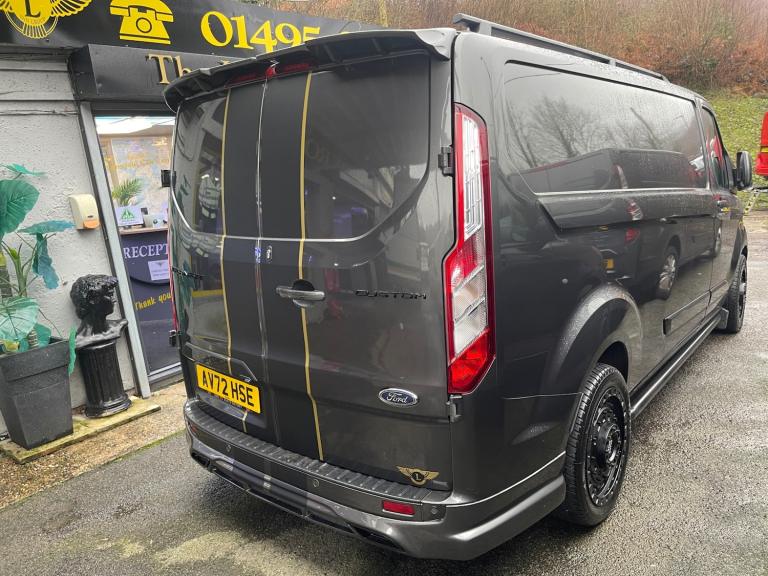 VAT TO BE ADDED. THIS VAN HAS COME DIRECT IN FROM FORD LEASE AND IS EXTREMELY CLEAN AND TIDY INSIDE AND OUT AND DRIVES SUPERB HAVING HAD VERY LIGHT USE ONLY BEING USED AS A VEHICLE DIAGNOSTICS SPECIALIST VEHICLE. FULL MOTION R STYLE BODY PACK, PRISTINE IN THE REAR WHICH IS PARTITIONED WITH A FULLY LINED WORK STATION LED LIGHTING AND REAR SHELVING AREA. FORD FACTORY FITTED TRIPPLE RETRACTABLE ROOF BARS, FORD FITTED SEAT COVERS, SEATS AS NEW UNDERNEATH. FULL SERVICE HISTORY UPTO DATE, TOTAL NUMBER OF SERVICES = 4. LAST MAJOR SERVICE CARRIED OUT AT 90453 MILES. 5 X PAGE HPI REPORT, MILEAGE VERIFICATION REPORT, ULEZ COMPLIANCE REPORT, VOSA REPORT, RAC MECHANICAL REPORT WHICH HAS BEEN CARRIED OUT AT 90643 MILES AND IS ALL GOOD. LAST MAJOR SERVICE THE WET-BELT AND WATER PUMP HAVE BEEN CHANGED. BRAND NEW SET OF MATT BLACK BLACK BEAR ALLOY WHEELS AND TYRES FITTED, FRONT AND REAR LOWER BUMPER SPOILERS, MATT BLACK HEAVY DUTY SPORTLINE SIDE BARS, MATT BLACK ROOF RAILS, REAR BARN DOORS SPOILER, RAPTOR LED FRONT GRILL, REAR MATT BLACK EXHAUST OUTLETS. TWO TONE GOLD / MATT BLACK GRAPHICS. 2 X PAGE VEHICLE APPRAISAL CONDITION REPORT ALSO CARRIED OUT AT 90643 MILES WHICH AGAIN IS ALSO ALL GOOD. ALLOY WHEELS, CRUISE CONTROL, FACTORY EQUIPPED HDD NAVIGATION SYSTEM, AIR-CON, HD REAR VIEW CAMERA,, QUICK CLEAR HEATED WINDSCREEN, QUICK CLEAR HEATED POWER FOLDING MIRRORS, HEATED SEATS, DAB STEREO, COLOUR CODED, MAGNETIC GREY. LOW RATE FINANCE IS AVAILABLE SUBJECT TO STATUS AND TERMS AND CONDITIONS. VAT IS TO BE ADDED TO THIS VAN. WE CAN ARRANGE A LIVE WIFI VIDEO CALL OR A WHATSAPP VIDEO CAN BE FORWARDED UPON REQUEST. WE CAN ALSO DELIVER THIS VAN ANYWHERE THROUGHOUT SCOTLAND / IRELAND / ENGLAND / WALES AND ALL OTHER UK OUTER ISLANDS DELIVERED TO INCLUDING THE CHANNEL ISLANDS.
