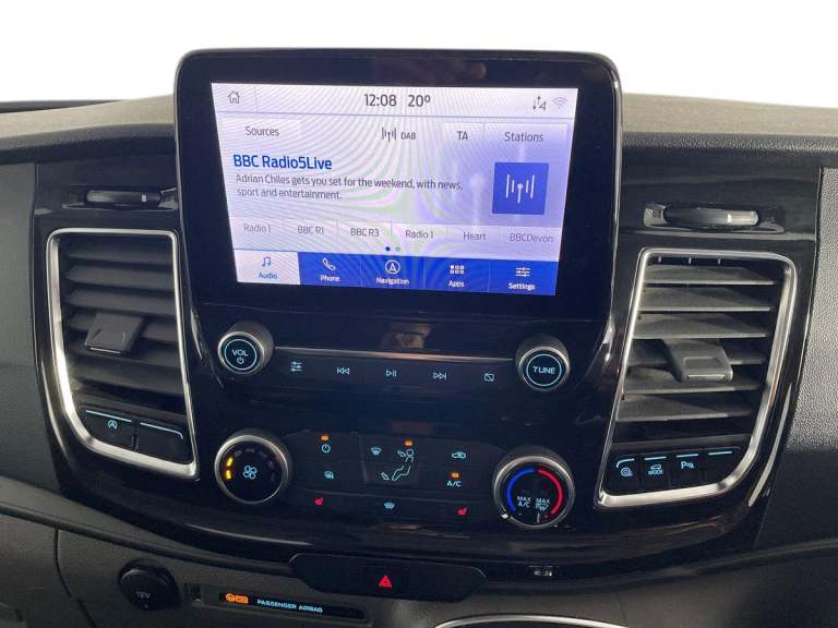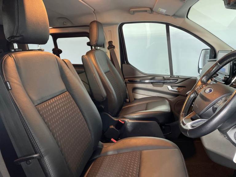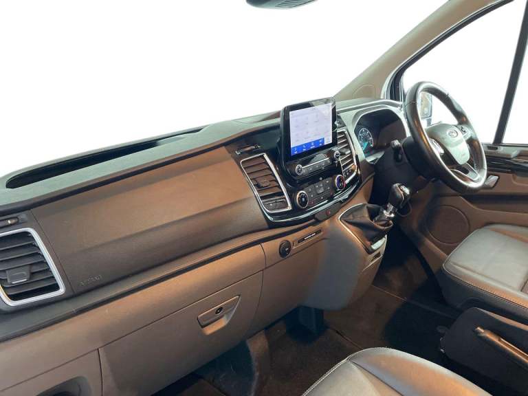 ..Easy fuel capless refuelling system, Embedded modem, Ford Eco mode, PAS, Seatbelt warning indicator, Selectable drive mode, Tyre pressure monitor, Vehicle maintenance monitor, Audio controls mounted on steering wheel, 180 Degree rear cargo check arms, Body coloured body side mouldings, Body coloured door mirrors, Body coloured front bumper, Body coloured lift/decklid exterior handles, Body coloured rear bumpers, Coloured grille with 3 base bars, Door open tyre carrier drop, Electric front windows with one touch facility for driver and front passenger, Emergency brake light flashing, Front splash guards/Mud flaps, Headlamp levelling, Hood accent stripe, Intermittent front wash/wipe, Passenger side sliding load door with track cover, Rear door edge warn reflectors, Rear mudflaps, Sport van body styling kit, Wide bodyside grey mouldings, 2 Interior grab handles, 2nd row three seat wide bench, 2nd/3rd Row courtesy light, 4 Load compartment tie down loops, Assist handle, Coat hook, Colour keyed exterior pack, Driver and passenger sunvisors with illuminated vanity mirrors, Extended carpet inside floor cover with rubber rear, Front manual air conditioning, Glazed bulkhead, Height adjustable head restraints, Illuminated footwell, Isofix child seat attachments - centre and offside 2nd row seats, Leather gearshift knob, LED load compartment light, Lockable glove box, Map reading lights, Moulded cab headlining, Part leather upholstery, Partial molded headliner, Passenger underseat storage box, Reach and rake adjustable steering column, Recirculation heater, Side rear door trim panel - Level 1, Sunglasses roof storage, Tool kit, Interior trim accent pack C - Transit custom, Rear seat pack 3 - Transit Custom, Visibility Pack 3 - Transit Custom, 3 point seatbelts for all seats, Driver's airbag, Dual note electric horn, Front outer passenger airbag with deactivation switch, Front passenger airbag, Height adjustable drivers seatbelt mount, Passenger seatbelt height adj, Seatbelt remainder for driver and passenger, Auto locking on drive-away, Auto relocking, Configurable Unlocking, Power door dead locks, Remote central locking, Thatcham category 1 alarm, 2 12v sockets, 80 litre fuel tank, ABS, Auto start/stop system, Diesel particulate filter, ESP, Extra heavy duty alternator, Mechanical parking brake, Roll stability control, Side wind mitigation, Standard duty suspension, 17'' alloy wheels style 2 contains 17'' mini space wheel with locking wheel lug nut, Full