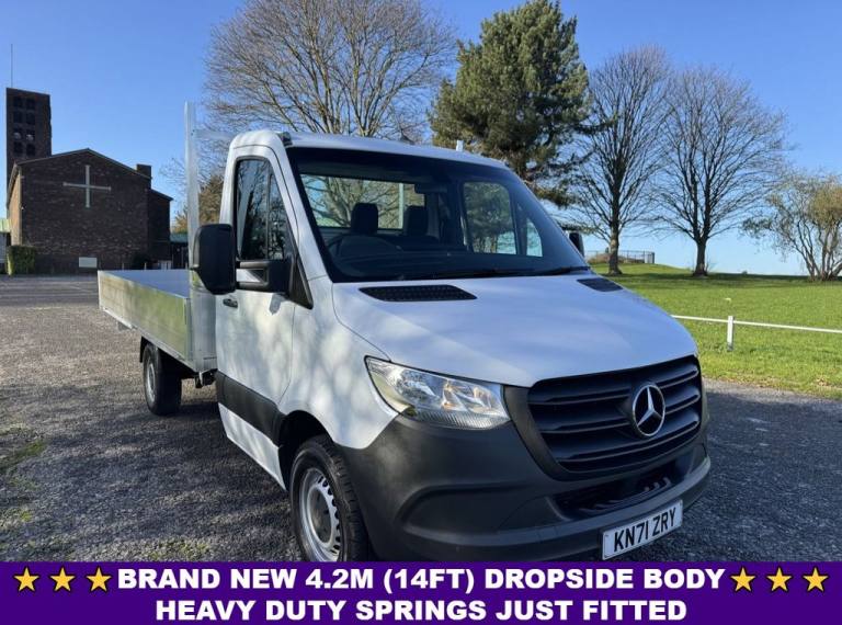 Very clean new shape euro 6 Mercedes Sprinter 4,2m. dropside, excellent drive. Fitted with brand new body. FREE UK delivery with no quibble money back guarantee. No known mechanical faults. Vehicle will come with 12 months mot, new service and full parts & labour warranty. Come and see us or buy over the phone with no obligation and get FREE DELIVERY to your door within UK mainland. Your payment fully refunded upon delivery if you are not happy for any reason whatsoever. Credit/debit cards accepted and finance welcome. Comprehensive peace of mind warranty with money back guarantee. Your old car or van taken in part exchange, anything considered with or without MOT. Please note this vehicle is located at our Walsall branch, less than 1 minute from Junction 10 of the M6 motorway. To view or for further information please call any time on [Phone number removed] or 01922 267227. We welcome your call day or night. Wide range of Ford Transit swb L1 L2 L3 L5, twin rear wheels, Citroen Relay, Fiat Ducato, Iveco Daily, Maxus, Mercedes Sprinter 314, 315, 316, 514, 516, Peugeot Boxer, Renault Master, Volkswagen Crafter available. All body types including flatbed dropsides in xxlwb, xlwb, and mwb, scaffold trucks, beavertail, curtain side , tipper, caged tipper, maximover lo low loader lutons, luton vans with and without tail lift, air conditioning, dropwell Lutons, box vans, beaver tail, arborist tree surgery tippers, tree surgeon vehicles. 6, 9, 15 and 17 seater minibuses, crew vans, splitter, band vans. Euro 6 ulez compliant, manual and automatic vans for sale. No vat vans available. If we dont have it in stock we can build it to your own specification. Specialists in extra long wheelbase 5m (17ft) and 6m (20ft) 3.5t. and 7.5t. flatbed drop sides, curtainsides and box vans. .16in Steel Wheels, ABS - Anti-Lock Braking System, ATTENTION Assist, Active Brake ASSIST, Adaptive Brake Lights, Adaptive ESP - Electronic Stability Programme, Additional USB-C, Airbag - Driver, Alternator 14V - 200A, Anti-Theft Protection Package, Armrest for Drivers Seat, Breakdown Management, Comfort Overhead Control Panel, Communication Module - LTE - For Digital Services, Crosswind Assist, Cruise Control, DAB Digital Radio Tuner, Double Co-Driver Seat, Double Locks, Drivers Seat, Electric Windows - Front, Fuel Filter with Water Separator, Heat-Insulating Glass with Filter Band on Windscreen, Heavy Duty Battery - 12V 92Ah, Hill Start Assist, Hydraulic Jack, Integrated Connected Thatcham Approved Alarm System, Jump Start Contact, Keyless Start, Lighting - Headlight Assistant, Lights for Left Hand Traffic, Longitudinal Member Reinforcement, MBUX Multimedia System with 7-inch Touch Screen, Mercedes-Benz Emergency Call System - eCall, Multifunction Steering Wheel, Outside Air Temperature Gauge, Power-Assisted Steering, Pre-Installation for Switch Panel, Prewiring for Parameterizable Special Module - PSM, Remote Central Locking, Shelf Above Windscreen, Side Marker Lights, Spare Wheel, Spare Wheel Bracket Below Frame End, Steering Wheel - Rake and Reach Adjustment, Storage - Hinged Lid for Stowage Compartment, Storage Compartment Underneath Cockpit, Summer Tyres, Suspension - Stabilisation Level I, Terminal Strip for Electrical Connection, Tyres 235-65 R16 C, Tyres Resistance-Optimised, Tyres without Name of Make, USB-C Socket - 5V, USB-C and Bluetooth Interface - WIFI Hotspot -Apple CarPlay - Android Auto and a DAB Radio, VIN Visible from Outside