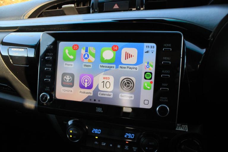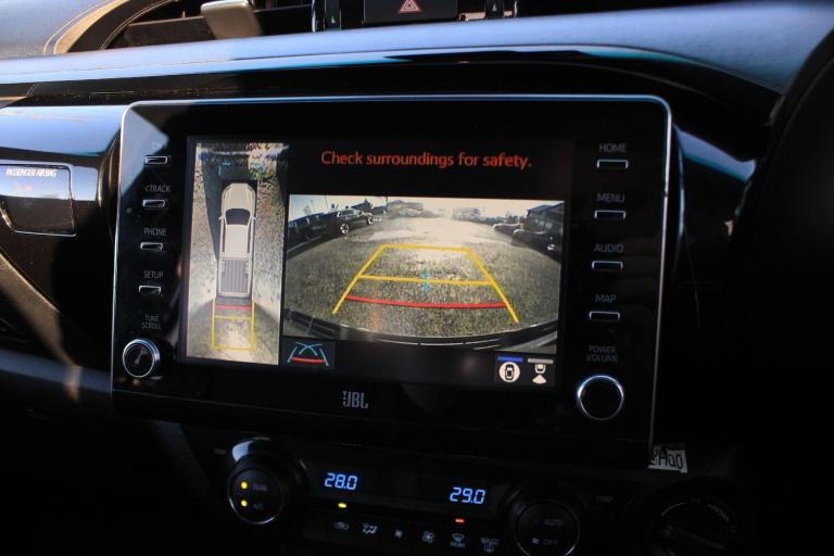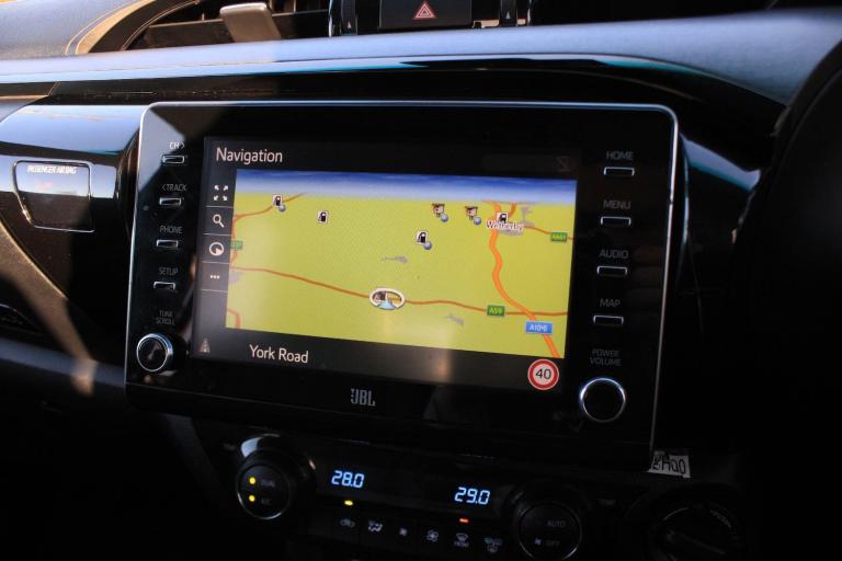 OVER 200 VEHICLES IN GROUP STOCK. Finished in Decuma Grey metallic with full black leather interior. Features include Apple CarPlay and Android Auto, satellite navigation, JBL premium sound system, 18 five twin spoke alloy wheels, front and rear park distance control with surround view cameras, heated front seats, digital dual zone climate control with automatic air conditioning, bluetooth connectivity with media streaming, DAB digital radio, automatic LED headlights with LED daytime running lights, intelligent adaptive cruise control, road sign assist, lane departure alert, downhill assist control, heated electric folding exterior mirrors, privacy glass, keyless entry, fixed side steps, voice control, multifunctional leather steering wheel, automatic transmission plus much more standard specification. This Hilux Invincible X is offered in excellent condition having covered 56000 miles from new by its 1 former keeper. Car comes complete with a Toyota service history benefitting from a recent full service carried out by Toyota to extend the warranty by another year. PLUS VAT. GOOGLE YORKSHIRE VEHICLE SOLUTIONS FOR OUR CUSTOMER REVIEWS. PLEASE CALL OR E-MAIL FOR FURTHER DETAILS OR TO ARRANGE A PERSONALISED VIDEO OR VIEWING.