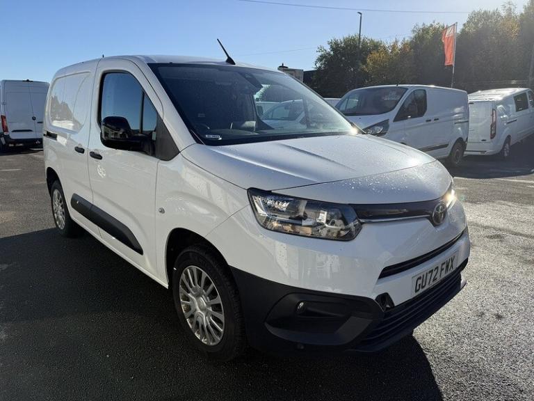 16in Steel Wheels with Wheel Caps - 5 Triple Spoke, 180 Degree Opening on Rear Wing Doors, 3.5in Colour Multi-Information Display, 8in Multimedia Screen, 8in Touchscreen, Adjustable Head Rests, Adjustable Speed Limiter - ASL, Airbags - Driver, Anti Lock Braking System - ABS with Electronic Brake-Force Distribution - EBD, Anti-Jam Protection on Power Windows, Armrest - Drivers, Audio Switches on Steering Wheel, Auto Headlights, Auto Wipers, Aux-In Connector, BA - Brake Assist, Black Front and Rear Bumpers, Black Interior Door Handles, Black Protection Moulding on Side Doors, Black Upper Front Grille, Bluetooth Connectivity, Boot Light, Bumpers - Front and Rear - Black, Cargo Deck Load Hooks - x6, Chrome Insert on Gear Shift, Closed Upper Driver Dashboard Storage Compartment, Closed Upper Passenger Dashboard Storage Compartment, Cruise Control, DAB Digital Radio, DAC - Downhill Assist Control, Daytime Running Lights, Digital Audio Broadcast - DAB, Door Handles - Black, Door Mirrors - Black, Door Mirrors - Electric - Heated and Power Adjustable and Retractable, Door Mirrors - Gloss Black, Driver and Front Passenger Personal Lights, Dynamic Guide Lines on Reversing Camera, eCall Emergency Call System, Electric Front Windows - One Touch Auto Up and Down Function, Front and Rear Parking Sensors, Front Bottle Holders - 0.5 Litre, Front Fog Lights, Front Passenger Airbag, Full Size Temporary Spare Wheel, HAC - Hill Start Assist Control, In-Floor Storage Box, Key Starting System, Manual Air Conditioning, Mirror on Driver Sun Visor, Monochrome Multi-Information Display, Open Tray on Passenger Dashboard, Overhead Storage, Panel Bulkhead, Panel Rear Wing Doors - 180 Degree Opening, Panel without Side Windows on 3rd Row, Parking Sensors - Front, Pollen Air Filter, Power Steering, Pro-Touch Multimedia System, Rear Parking Sensors, Reversing Camera, Reversing Camera Display in Audio Screen, Roof Antenna, Row 1 Carpet Floor, Rubber Floor in Cargo Area, Satin Chrome Insert on Steering Wheel, Satin Chrome Surround on Multimedia Display, Smart Cargo, Smart Cargo - Mobile Office, Smartphone Integration - Apple Car Play and Android Auto, Speakers x2, Steering Wheel - 3-Spoke Urethane, Supplemental Restraint System - SRS - Airbags - 6 Airbags, Twin Sliding Side Doors, Tyre Pressure Warning System, Urethane Gear Shift, USB Connector, USB Connectors x2, VSC - Vehicle Stability Control.This 2022 Toyota PROACE CITY is a prime example of a well maintained commercial vehicle. The 1.5 BlueHDi Icon Short Panel Van SWB Euro 6 (s/s) 5dr model offers a robust 1.5L Diesel Engine, meeting Euro 6 emission standards. This Icon trim variant comes equipped with a helpful Reversing Camera for easier parking, complemented by Rear Parking Sensors. For enhanced visibility and convenience, it features Auto Headlights.The PROACE CITY Icon boasts an 8in Multimedia Screen, offering seamless Smartphone Integration with both Apple CarPlay and Android Auto. This vehicle achieves an impressive fuel economy of 51 mpg, a highlight that demonstrates its efficiency compared to similar vehicles. Furthermore, its low CO2 emissions indicate a more environmentally conscious choice.