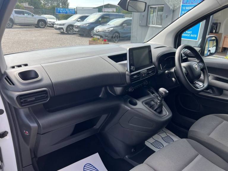*1 OWNER*FULL SERVICE HISTORY* Toyota Proace City 1.5 BlueHDi Icon Short Panel Van 5dr Diesel Manual SWB Euro 6 (s/s) (100 bhp). 12 Months MOT. Full service history. 1 Owner. 6 Speed gearbox. 3 Seats. High specification van including twin sliding doors, Air conditioning, Front & rear parking sensors, Reversing camera, Cruise control, Electric folding & adjust mirrors, Auto lights & wipers, DAB radio, Bluetooth. Check out our Autotrader 5 star reviews to see our happy customers. Maghull Garages are proud of being different. We are an independent family run business and take pride in each and every vehicle we sell. With our onsite workshop, all of our vehicles receive a 118 point PDI Check. We take pride in our work so you can have pride in your new vehicle. FINANCE AVAILABLE. We ensure that all vehicles are HPI clear with guaranteed mileage. We price check daily, to ensure that you get the best deal. Up to 2 years warranty available. Please do not hesitate to contact us 0151 526 6125 for any further information. .16in Steel Wheels with Wheel Caps - 5 Triple Spoke, 180 Degree Opening on Rear Wing Doors, 3.5in Colour Multi-Information Display, 8in Touchscreen, Adjustable Head Rests, Adjustable Speed Limiter - ASL, Airbags - Driver, Anti Lock Braking System - ABS with Electronic Brake-Force Distribution - EBD, Anti-Jam Protection on Power Windows, Armrest - Drivers, Audio Switches on Steering Wheel, Auto Headlights, Auto Wipers, Aux-In Connector, BA - Brake Assist, Black Front and Rear Bumpers, Black Interior Door Handles, Black Protection Moulding on Side Doors, Black Upper Front Grille, Bluetooth Connectivity, Boot Light, Cargo Deck Load Hooks - x6, Chrome Insert on Gear Shift, Closed Upper Driver Dashboard Storage Compartment, Closed Upper Passenger Dashboard Storage Compartment, Cruise Control, DAB Digital Radio, DAC - Downhill Assist Control, Daytime Running Lights, Door Handles - Black, Door Mirrors - Electric - Heated and Power Adjustable and Retractable, Door Mirrors - Gloss Black, Driver and Front Passenger Personal Lights, Dynamic Guide Lines on Reversing Camera, Electric Front Windows - One Touch Auto Up and Down Function, Front Bottle Holders - 0.5 Litre, Front Fog Lights, Front Passenger Airbag, Full Size Temporary Spare Wheel, HAC - Hill Start Assist Control, In-Floor Storage Box, Key Starting System, Manual Air Conditioning, Mirror on Driver Sun Visor, Monochrome Multi-Information Display, Open Tray on Passenger Dashboard, Overhead Storage, Panel Bulkhead, Panel without Side Windows on 3rd Row, Parking Sensors - Front, Pollen Air Filter, Power Steering, Rear Parking Sensors, Roof Antenna, Row 1 Carpet Floor, Rubber Floor in Cargo Area, Satin Chrome Insert on Steering Wheel, Satin Chrome Surround on Multimedia Display, Smart Cargo, Smart Cargo - Mobile Office, Smartphone Integration - Apple Car Play and Android Auto, Speakers x2, Steering Wheel - 3-Spoke Urethane, Twin Sliding Side Doors, Tyre Pressure Warning System, USB Connectors x2, Urethane Gear Shift, VSC - Vehicle Stability Control, eCall Emergency Call System