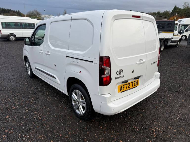 Toyota Proace City Design . Top of the range Proace in immaculate condition . Design spec so come fully loaded including Alloys , Air Con , reversing camera , sat nav , cruise control . 2 keys . FSH . Van will come with 12 months MOT and a full fresh service ..16in Alloy Wheels - 5 Double-Spoke, 3.5in Colour Multi-Information Display, 8in Multimedia Screen, Adjustable Speed Limiter - ASL, Anti Lock Braking System - ABS with Electronic Brake-Force Distribution - EBD, Auto Headlights, Auto Wipers, BA - Brake Assist, Black Upper Front Grille, Bluetooth Connectivity, Body-Coloured Protection Moulding on Side Doors, Boot Light, Bumpers - Front and Rear - Body-Coloured, Cargo Deck Load Hooks - x6, Closed Upper Driver Dashboard Storage Compartment, Closed Upper Passenger Dashboard Storage Compartment, Cruise Control, DAC - Downhill Assist Control, Daytime Running Lights, Digital Audio Broadcast - DAB, Door Handles - Body Coloured, Door Mirrors - Black, Door Mirrors - Electric - Heated and Power Adjustable and Retractable, Driver and Front Passenger Personal Lights, Electric Front Windows - One Touch Auto Up and Down Function, Front Bottle Holders - 0.5 Litre, Front Fog Lights, Front and Rear Parking Sensors, Full Size Temporary Spare Wheel, HAC - Hill Start Assist Control, In-Floor Storage Box, Manual Air Conditioning, Mirror on Driver Sun Visor, Open Tray on Passenger Dashboard, Overhead Storage, Panel Bulkhead, Panel Rear Wing Doors - 180 Degree Opening, Pollen Air Filter, Power Steering, Pro-Touch Multimedia System, Reversing Camera, Reversing Camera Display in Audio Screen, Rubber Floor in Cargo Area, Smart Cargo, Smart Cargo - Mobile Office, Speakers x2, Supplemental Restraint System - SRS - Airbags - 6 Airbags, Toyota Safety Sense + Alarm, Toyota Touch 2 with Go Navigation, Twin Sliding Side Doors, Tyre Pressure Warning System, USB Connector, VSC - Vehicle Stability Control, eCall Emergency Call System