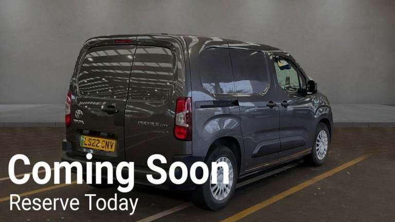 ** Quick question? Friendly help. ???? Call or WhatsApp: 01793939356 **This 2022 Toyota PROACE CITY is a remarkable example, boasting a full service history and having had only one owner from new. This electric Icon Short Panel Van, with its automatic transmission and 50 kWh battery, offers a maximum range of 171 miles when new. It comes with a 12 month MOT provided on purchase and the last service was completed on 29 November 2025 at 33,334 miles. Notable features include front and rear parking sensors with dynamic guide lines on the reversing camera, and Bluetooth connectivity for seamless communication. Manual air conditioning ensures a comfortable cabin environment.The PROACE CITY is powered by a 134 bhp electric engine, providing responsive performance. Charging is convenient, with a full charge at home taking approximately 7 hours and 6 minutes using a 7kW charger, and a rapid charge to 80% possible in just 30 minutes at a public charging station. These charging capabilities, combined with its single owner provenance and comprehensive service history, demonstrate how this PROACE CITY stands out from other vehicles in its class. A 3 month warranty is also included for your peace of mind.