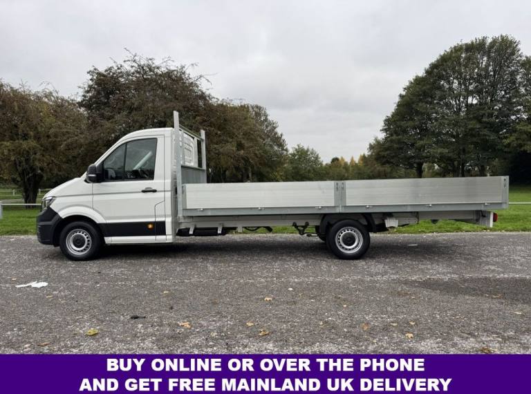 Very clean 3.5t. Volkswagen Crafter Extra Long 5.2m (17ft) dropside, lovely condition, air conditioning, excellent drive. FREE UK delivery with no quibble money back guarantee. No known mechanical faults. Vehicle will come with 12 months mot, new service and full parts & labour warranty. Come and see us or buy over the phone with no obligation and get FREE DELIVERY to your door within UK mainland. Your payment fully refunded upon delivery if you are not happy for any reason whatsoever. Credit/debit cards accepted and finance welcome. Comprehensive peace of mind warranty with money back guarantee. Your old car or van taken in part exchange, anything considered with or without MOT. Please note this vehicle is located at our Walsall branch, less than 1 minute from Junction 10 of the M6 motorway. To view or for further information please call any time on [Phone number removed] or 01922 267227. We welcome your call day or night. Wide range of Ford Transit swb (short wheelbase), lwb (long wheelbase) L1 L2 L3 L5, twin rear wheels, Citroen Relay, Fiat Ducato, Iveco Daily, Maxus, Mercedes Sprinter 314, 315, 316, 514, 516, Peugeot Boxer, Renault Master, Volkswagen Crafter available. All body types including flatbed dropsides in xxlwb, xlwb Extra Long wheel base), and mwb, scaffold trucks, beavertail, curtain side , tipper, caged tipper, maximover lo low loader lutons, luton vans with and without tail lift, air conditioning, dropwell Lutons, box vans, beaver tail, arborist tree surgery tippers, tree surgeon vehicles. 6, 9, 15 and 17 seater minibuses, crew vans, splitter, band vans. Euro 6 ulez compliant, manual and automatic vans for sale. No vat vans available. If we dont have it in stock we can build it to your own specification. Specialists in extra long wheelbase 5m (17ft) and 6m (20ft) 3.5t. and 7.5t. flatbed drop sides, curtainsides and box vans. Welfare and crew vans, some ideal for camper/motorhome conversions also available. .12V Socket - Front, 16in Steel Wheels, 1x Remote Control Folding Key - 1 Rigid Key, 75 Litre Fuel Tank with Lockable Cap, ABS - Anti-Lock Braking System, Airbags - Driver, Automatic Hazard Lights Activation Under Emergency Braking, Automatic Post-Collision Braking System, Basic Single Drivers Seat, CFCU Preparation, Composition Audio, Driver Alert System, Dual Passenger Seat in Cab with Storage Compartment and Folding Tray in Backrest, EBA - Electronic Brake Assist, ESP - Electronic Stability Programme - Load Adjusting, Electric Windows - Front, Electromechanical Servotronic Steering, End Cross Member - Wide Design - Bolted, Engine Immobiliser, Front Assist including City Emergency Braking, Full Height Steel Bulkhead without Window, Full Size Steel Spare Wheel, Glove Compartment - Illuminated with Lockable Lid, Halogen Main Headlights with Range Control and Daytime Running Function, Multi-function Display, Parking Brake - Hill Hold Control, Rubber Floor Covering, Seatbelt Warning Light For Driver, Side Marker Lights, Steering Wheel - Reach and Rake Adjustable, Three Point Inertia Reel Seatbelts for all Seats, Tool Kit and Jack, Windscreen Wiper with Variable Intermittent Delay and Wash-Wipe System, Wing Mirrors - Manually Adjustable