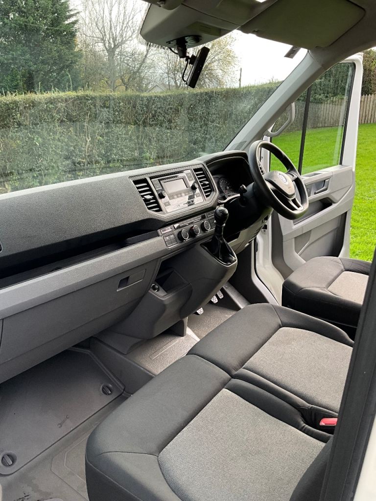 January 2022 Volkswagen Crafter 2.0 MWB High Roof Panel van, Warranted 59,000 miles, 6 speed manual gearbox, Tested until September 2026, Service history, Spare key, Reversing camera, Fold down middle seat, Rear Plylining, Bluetooth connectivity, 1 owner from new, Immaculate condition.