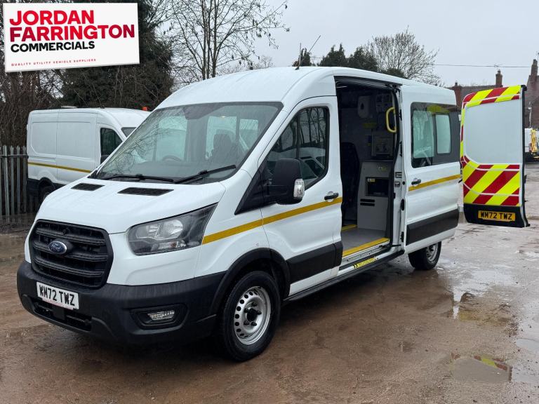 THIS IS A 2023 '72 reg' FORD TRANSIT L3 H2 350 (EURO 6) WELFARE CREW VAN / MESSING UNIT. IT HAS COME DIRECT FROM THE LEASE COMPANY WITH A FULL SERVICE HISTORY AND A WARRANTED 75,000 MILES ONLY. THE VEHICLE IS IN EXCELLENT CONDITION THROUGHOUT AND BENEFITS FROM THE HUGE SPECIFICATION LISTED BELOW;