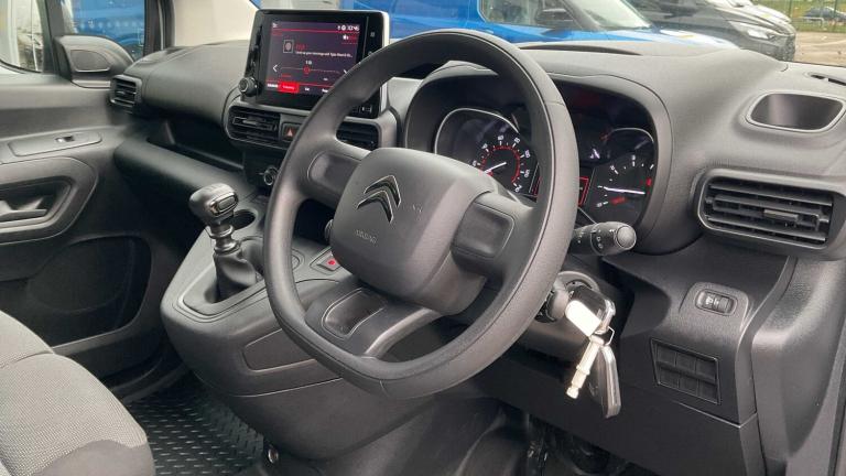 12V Socket in Dashboard, 8in Colour Touchscreen with Citroen Connect DAB Radio - Bluetooth Handsfree - USB Socket, Citroen Connect Box with Emergency and Assistance System, Cruise Control with Programmable Speed Limiter, Electric Power Assisted Steering with Reach and Rake Adjustable Steering Column, Free2Move Connect Fleet Telematics (6 Month Subscription From New), Height Adjustable Halogen Headlights, High Level Third Brake Light, Mirror Screen - Apple CarPlay - Android Auto, Multi-Function On-Board Trip Computer, Rev Counter with Maintenance and Gear Efficiency - GEI - Indicators, Tyre Pressure Monitor, 16in Steel Wheels with Black Centre Cap, Electric Windows - Front with One Touch Operation, Electrically Adjustable Door Mirrors with Temperature Sensor, Lockable Fuel Cap, Manual Folding Exterior Mirrors, Puncture Repair Kit, Side Rubbing Strips, Two-Speed and Intermittent Front Wipers, 6 Floor-Mounted Load Securing Rings, Air Conditioning, Cup Holders for Driver and Passenger on Either Side of the Dashboard, Drivers Seat - 4-Way Adjuctable with Adjustable Headrests, Front Door Pockets with 1.5L Bottle Holders, Full Bulkhead Compliant with ISO27956, Hard Plastic Floor Protection in Cabin, Nearside Side Sliding Door, Overhead Storage Shelf in Cabin, Single Passenger Seat, Top Box Storage Compartment, Unglazed Asymmetric Rear Doors Opening to 180 Degrees, Airbags - Driver, Alarm - Parametric and Volumetric - Thatcham Category 1 Approved Alarm with Tilt Sensor, Automatic Activation of Hazard Warning Lights on Major Deceleration, Dashboard Mounted Central Locking Push Buttons and Auto Locking Above 7 MPH, Door Opening Warning Light and Audible Lights-On Warning, Driver and Passenger Seatbelt Unfastened Warning, ESC with Hill Start Assist - ABS Braking Including EBA and EBFD, Manual Parking Brake, Remote Central Locking with Deadlocks, Rolling Code Transponder Immobiliser, Visible VIN at Base of Windscreen