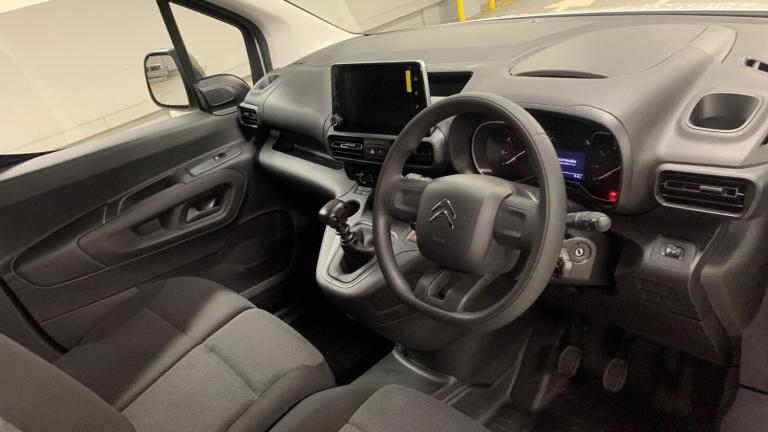 12V Socket in DashboardCitroen Connect Box with Emergency and Assistance SystemFree2Move Connect Fleet Telematics (6 Month Subscription From New)Cruise Control with Programmable Speed LimiterMulti-Function On-Board Trip ComputerRev Counter with Maintenance and Gear Efficiency - GEI - IndicatorsTyre Pressure MonitorElectric Windows - Front with One Touch OperationLockable Fuel CapManual Folding Exterior MirrorsTwo-Speed and Intermittent Front WipersHeight Adjustable Halogen HeadlightsHigh Level Third Brake Light6 Floor-Mounted Load Securing RingsAir ConditioningCup Holders for Driver and Passenger on Either Side of the DashboardHard Plastic Floor Protection in CabinNearside Side Sliding DoorOffside Sliding Side Loading DoorOverhead Storage Shelf in CabinSingle Passenger SeatTop Box Storage CompartmentUnglazed Asymmetric Rear Doors Opening to 180 Degrees16in Steel Wheels with Black Centre Cap8in Colour Touchscreen with Citroen Connect DAB Radio - Bluetooth Handsfree - USB SocketAlarm - Parametric and Volumetric - Thatcham Category 1 Approved Alarm with Tilt SensorDrivers Seat - 4-Way Adjuctable with Adjustable HeadrestsElectrically Adjustable Door Mirrors with Temperature SensorFront Door Pockets with 1.5L Bottle HoldersFull Bulkhead Compliant with ISO27956Mirror Screen - Apple CarPlay - Android AutoPuncture Repair KitSide Rubbing StripsElectric Power Assisted Steering with Reach and Rake Adjustable Steering ColumnAirbags - DriverAutomatic Activation of Hazard Warning Lights on Major DecelerationDashboard Mounted Central Locking Push Buttons and Auto Locking Above 7 MPHDoor Opening Warning Light and Audible Lights-On WarningDriver and Passenger Seatbelt Unfastened WarningESC with Hill Start Assist - ABS Braking including EBA and EBFDManual Parking BrakeRemote Central Locking with DeadlocksRolling Code Transponder ImmobiliserVisible VIN at Base of Windscreen