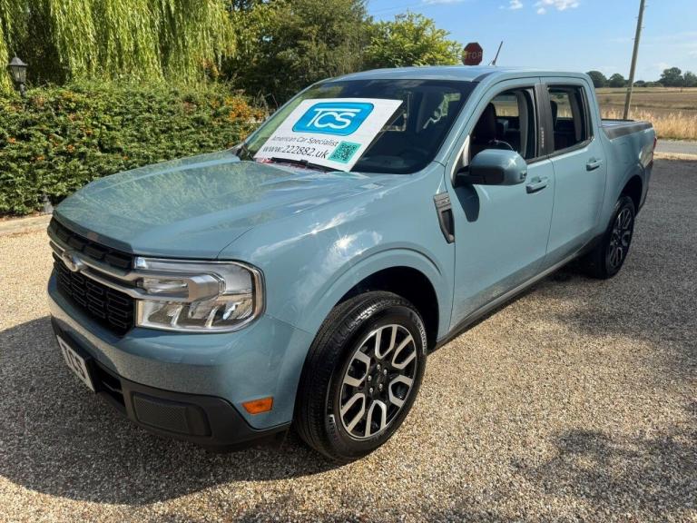 Low mileage LHD import 2023 Ford Maverick Lariat 2.5L HYBRID 2WD CrewCab compact pick up truck, 4 foot 5 inch bed (6 foot open), 191Bhp, Area 51 Blue with Desert Brown Activex Interior, Automatic Transmission, Featuring: Climate & Cruise control, SYNC3 TFT screen media with CarPlay & Android, Reverse camera, 18inch diamond cut alloys, steel spare, Bed liner protector, Hard folding bed tonneau cover, Keyless securicode entry system, Speedo in Miles & Kilometers, Heavy duty rubber mats, Owner book pack, Both remote keys, fantastic condition throughout! Note: Price plus 20% VAT. Vat Qualifying commercial vehicle. Buy With Confidence All Duties & Taxes paid / IVA & V5C complete / VAT qualifying / CarFax clear / HPI & Experian clear / BuildSheet / ULEZ Exempt / £360 Road Tax / Extendable 12M Platinum Warranty / Part-Exchange Welcome / Finance AvailableSpecification IncludesPower Windows, Power Sliding Rear Window, Power Door Locks, Power Door Mirrors, Keyless Entry Pad, Push Button Start, Leather Wrapped Tilt Steering Wheel, Dual Zone Automatic Climate Control, Rearview Camera, Ambient Lighting, 8inch Centre Stack Touchscreen, Sync 3, AM/FM Premium Stereo with 6 Speakers, Bluetooth, Apple CarPlay, Google Android, Navigation Through Smartphone, Selectable Drive Modes, Rear Seat Bench Seat with Under Seat Storage with Dual USB, Pre-Collision Assist, Emergency Braking, Automatic LED Headlamps, Daytime Running Lamps, Power Tailgate Lock, Trailer Hitch Receiver, 18inch Wheels, Full-Size Spare Wheel, Rear Fog Lamp, 4.6Ft Pickup Bed with Bottle Opener, Hard Drop-in Bedliner, Hard Tonneau Cover, Heavy Duty Floor Liners, Digital Speedometer in MPH/KPH. Technical StatsHybrid technology 2.5L 4v PFI 4cylinder 191 hp total combined 328 lb ft torque0 to 60 7.7 secondsTop speed 110mph Weight 1,666 kgULEZ Exempt Average 44 mpg (Imperial)Fuel tank capacity 11g (imperial)Range potential 450 miles Road tax £360 or £31 on direct debitFactory Build SheetMaverick Hybrid Pick Up TruckInterior Fabric: 596003 : With Vinyl TrimDrive: DR0A0 : LHD 2WD (Front Wheel Drive)Engine Type: ENS30 : 2.5L 4v PFI I4 Gas/ElectricMarket Derivative: MD0N0 : NAAO Market DerivativePositive Territories: WASAC0 : (+)""BR""Final Drive Ratios: EGAAN0 : 2.91 Final Drive RatioInterior Environment: 000TN0 : Java InteriorTransmission: TRGA0 : Auto -H4F45 W/O ODC FHEV/PHEVExterior Paint: PN4DP0 : Area 51Vehicle Line: VLFE2 : Maverick 2022-Interior Fabric: 596TN0 : Vinyl Trim/JavaVehicle Category: CAR : CarBuild Date: 06/24/2022Year:2023Catalogue Code: CFE : Maverick 2022-Trim Type:6Trim Color:NExterior Paint Code VO:KUThackray Car Sales Limited TCS DANBURY ESSEXYouTube Walk-around video: please visit TCS Showroom Viewings strictly by appointment only, as we have several storage facilities for our stock vehicles. Part-exchange vehicles welcome, vehicles supplied with a HPI confirmation certificate, T&Cs, *Credit & debit cards may be accepted, UK mainland delivery available at additional cost, Finance credit facilities, Comprehensive warranty options from 3 to 36 months, Tyre, MOT & Gap cover available on some vehicles. Please call for more details or to reserve this vehicle. All vehicles are strictly subject to availability. For demonstration road tests a copy of your valid driving licence must be available on our request. Personal cherished number plates are not offered with our vehicles unless stated and advertised included in the vehicle details. TCS are a family owned private Limited business with over 30 years motor retail experience and we pride ourselves on our professional business practices and offer total customer care to all our valued customers. *Note: Finance & Driveaway insurance subject to T&Cs, status & availability. For vehicle valuations we need to appraise your vehicle and documentation. Credit cards accepted for holding deposits only, Debit card payments for the balance of your purchase. E&OE.TCS DANBURY ESSEX